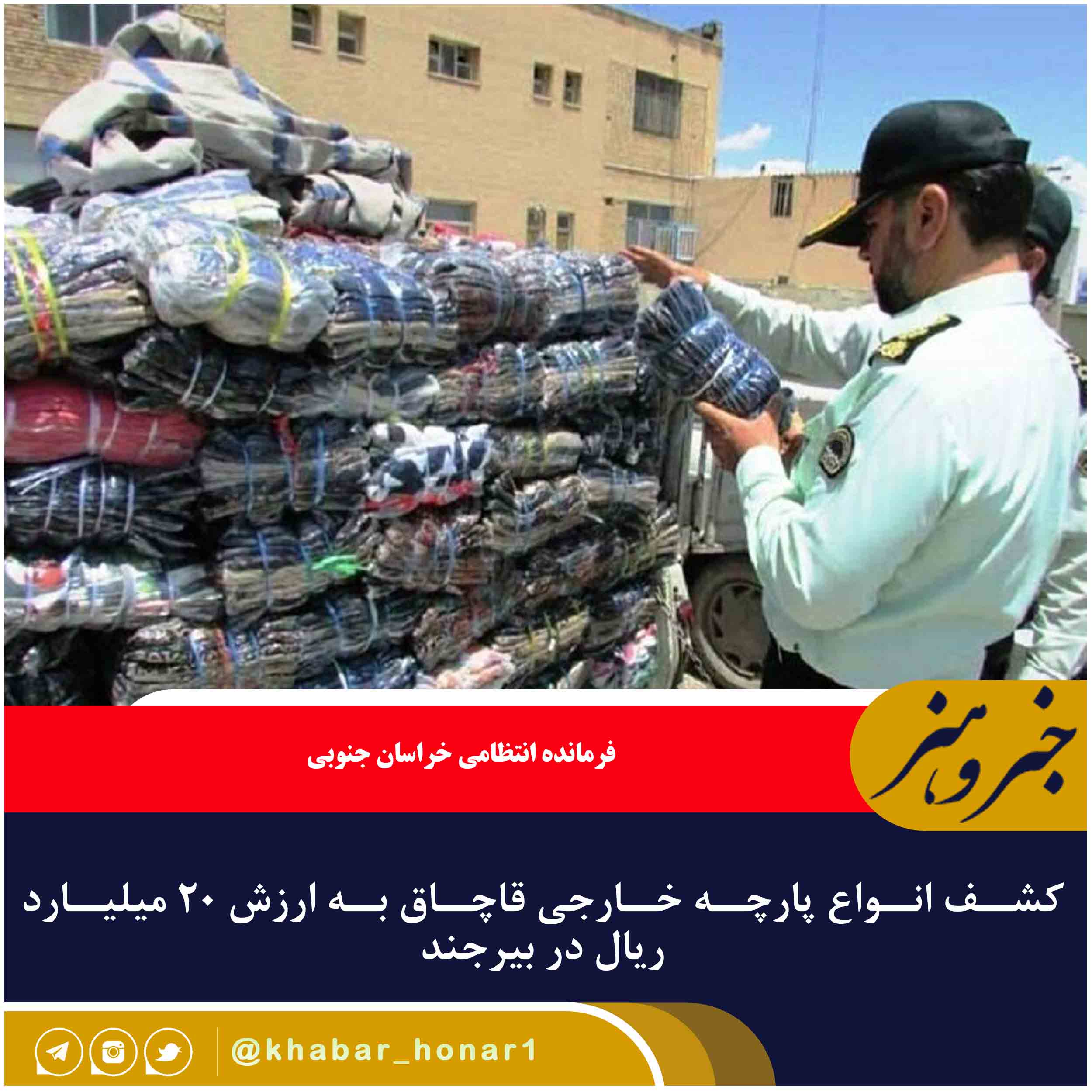 فرمانده انتظامی خراسان جنوبی گفت: ۶ هزار متر انواع پارچه خارجی قاچاق از منزلی در شهر بیرجند کشف و ضبط شد.