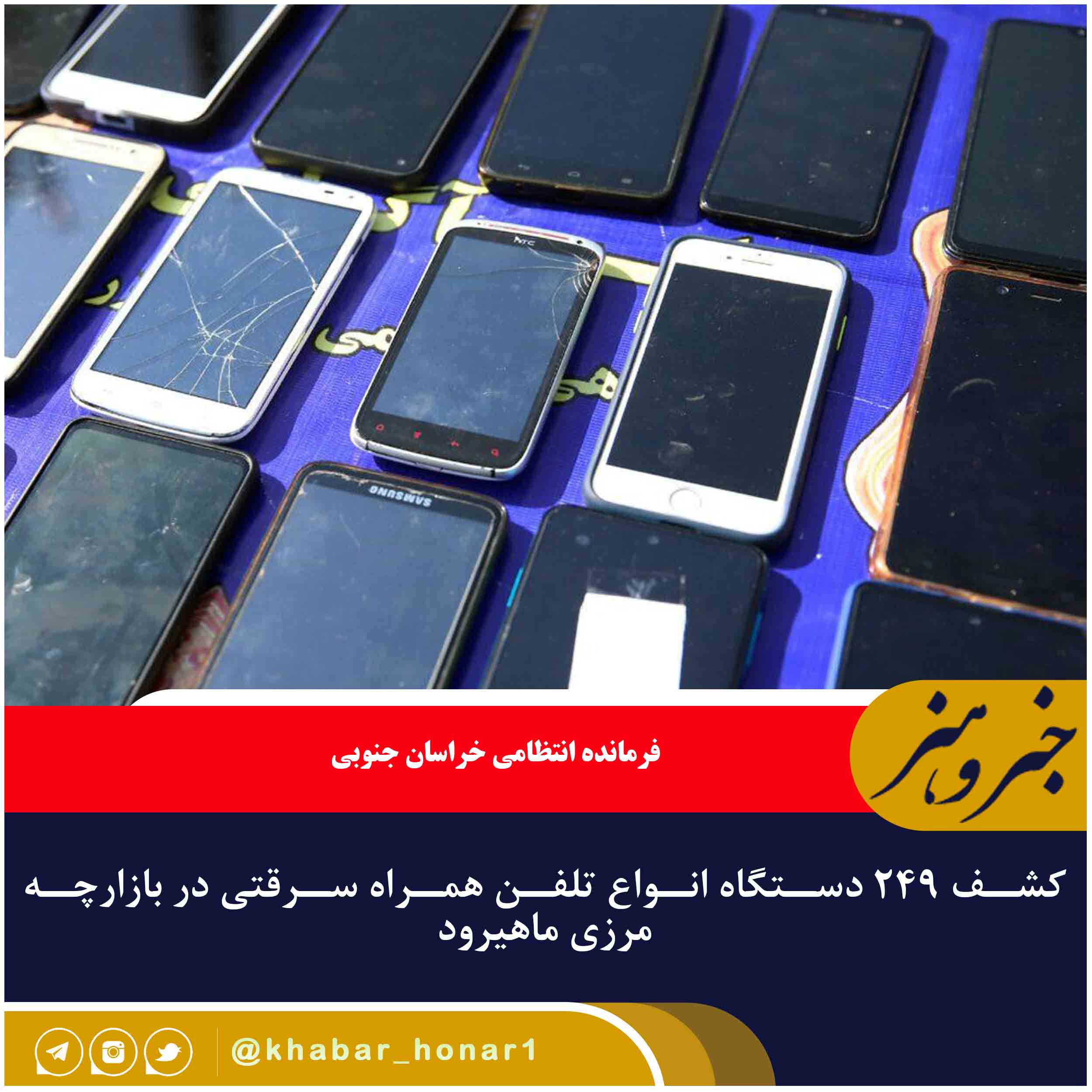 فرمانده انتظامی خراسان جنوبی از کشف ۲۴۹ دستگاه انواع تلفن همراه سرقتی در بازارچه مرزی ماهیرود خبر داد و گفت: متهم قصد داشت گوشیها را از طریق مرز ماهیرود به کشور افغانستان منتقل کند.