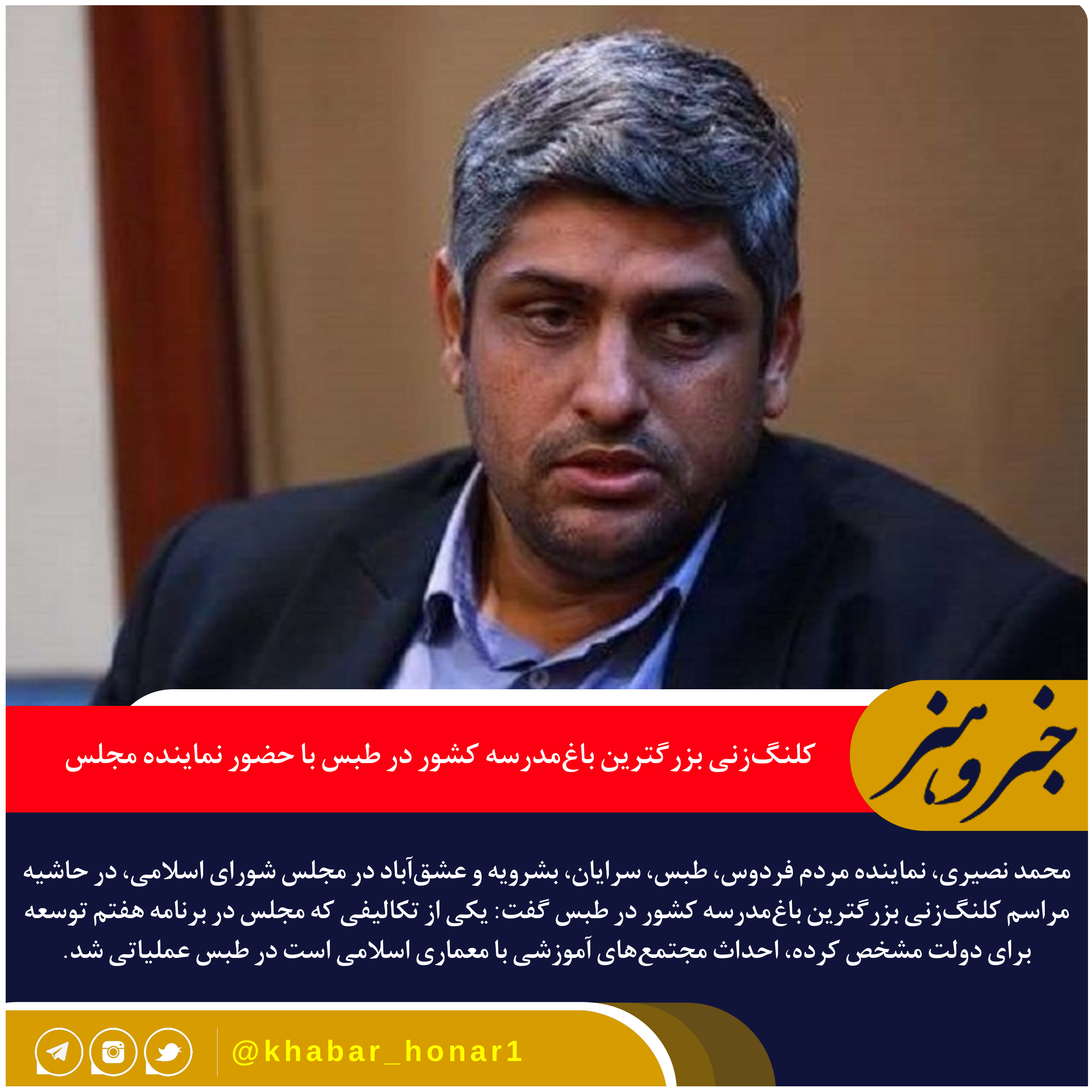 به گزارش خبر و هنر ، محمد نصیری، نماینده مردم فردوس، طبس، سرایان، بشرویه و عشقآباد در مجلس شورای اسلامی، در حاشیه مراسم کلنگزنی بزرگترین باغمدرسه کشور در طبس گفت: یکی از تکالیفی که مجلس در برنامه هفتم توسعه برای دولت مشخص کرده، احداث مجتمعهای آموزشی با معماری اسلامی است که امروز در طبس عملیاتی شد.