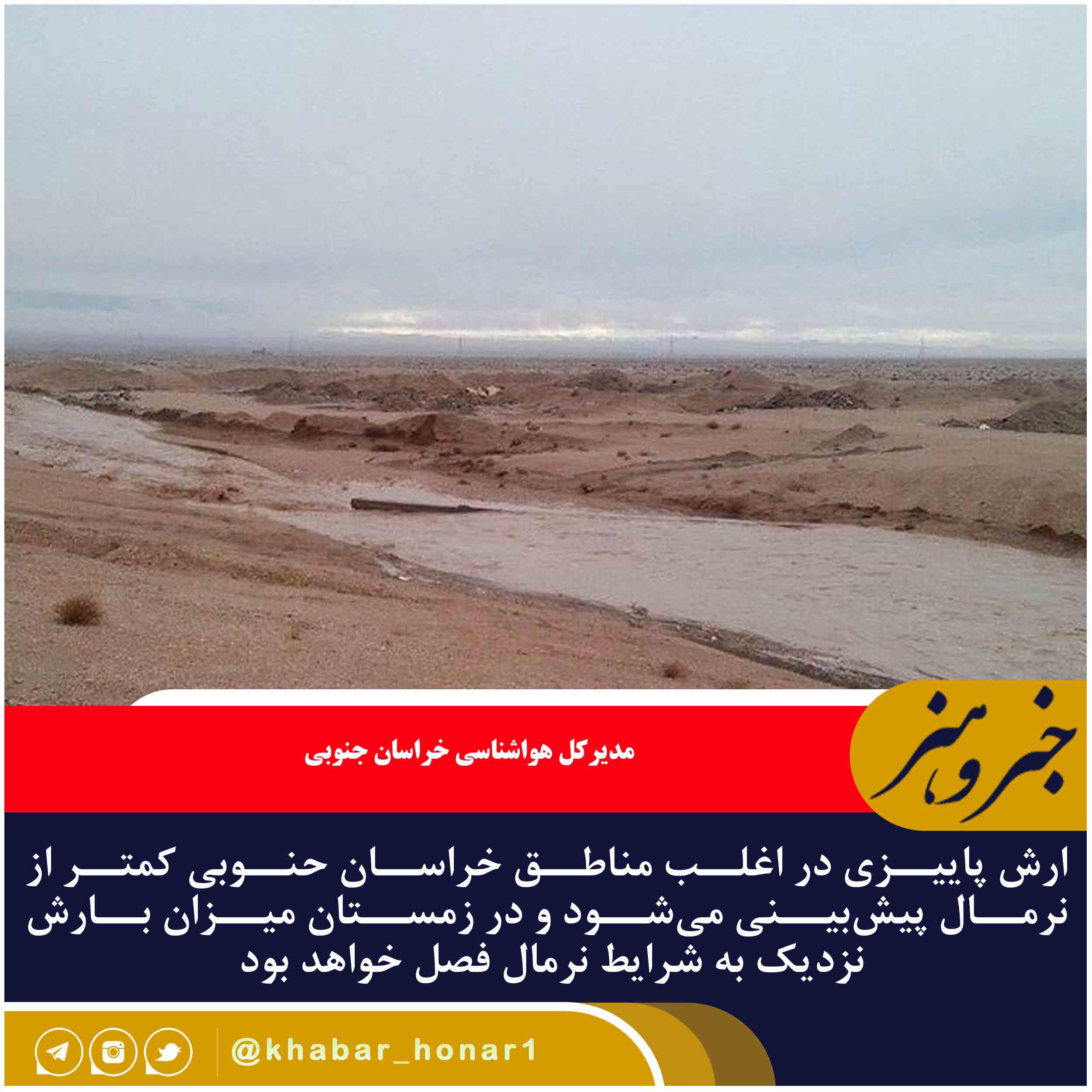 مدیرکل هواشناسی خراسان جنوبی گفت: بارش پاییزی در اغلب مناطق خراسان حنوبی کمتر از نرمال پیشبینی میشود و در زمستان میزان بارش نزدیک به شرایط نرمال فصل خواهد بود.
