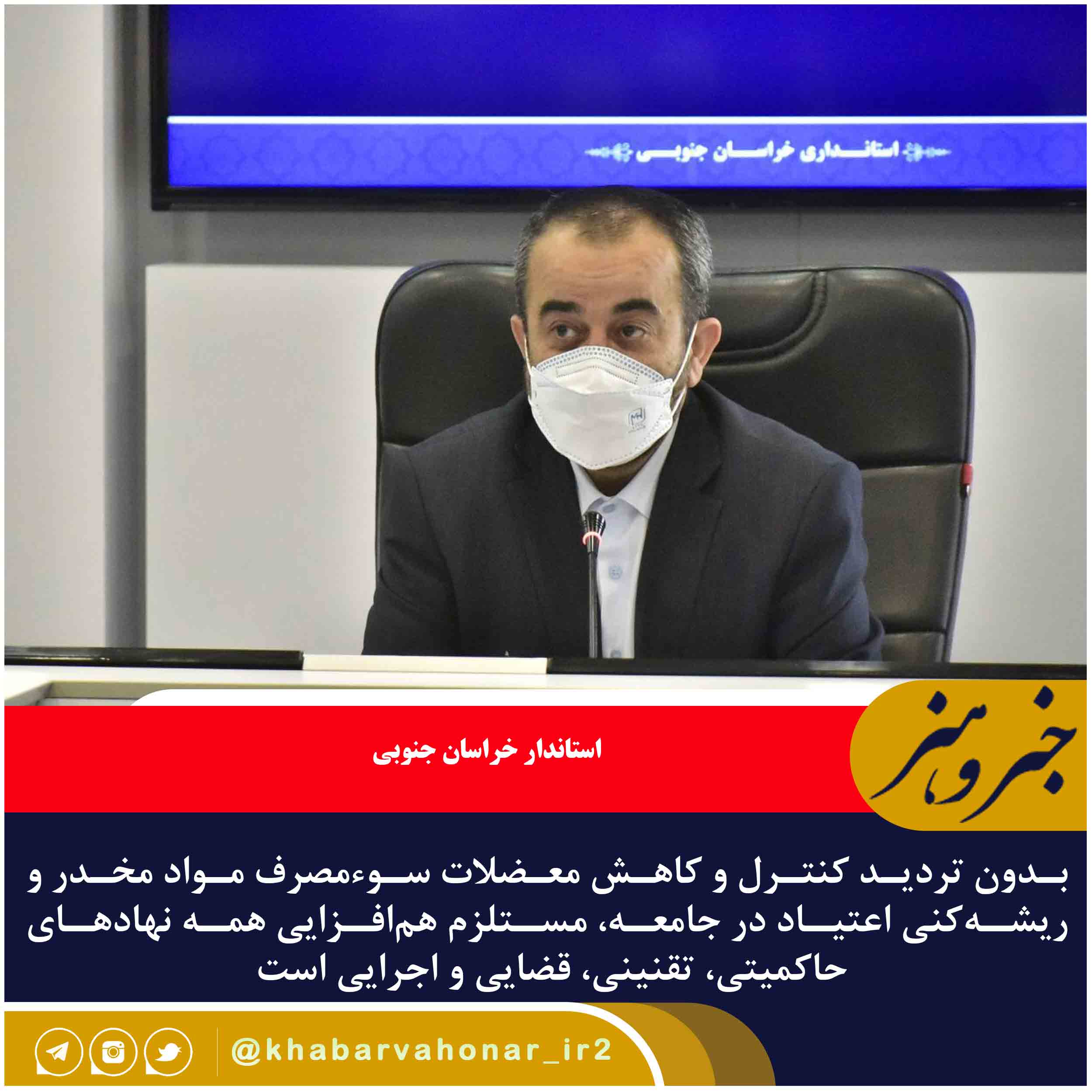 استاندار خراسان جنوبی گفت: بدون تردید کنترل و کاهش معضلات سوءمصرف مواد مخدر و ریشهکنی اعتیاد در جامعه، مستلزم همافزایی همه نهادهای حاکمیتی، تقنینی، قضایی و اجرایی است.