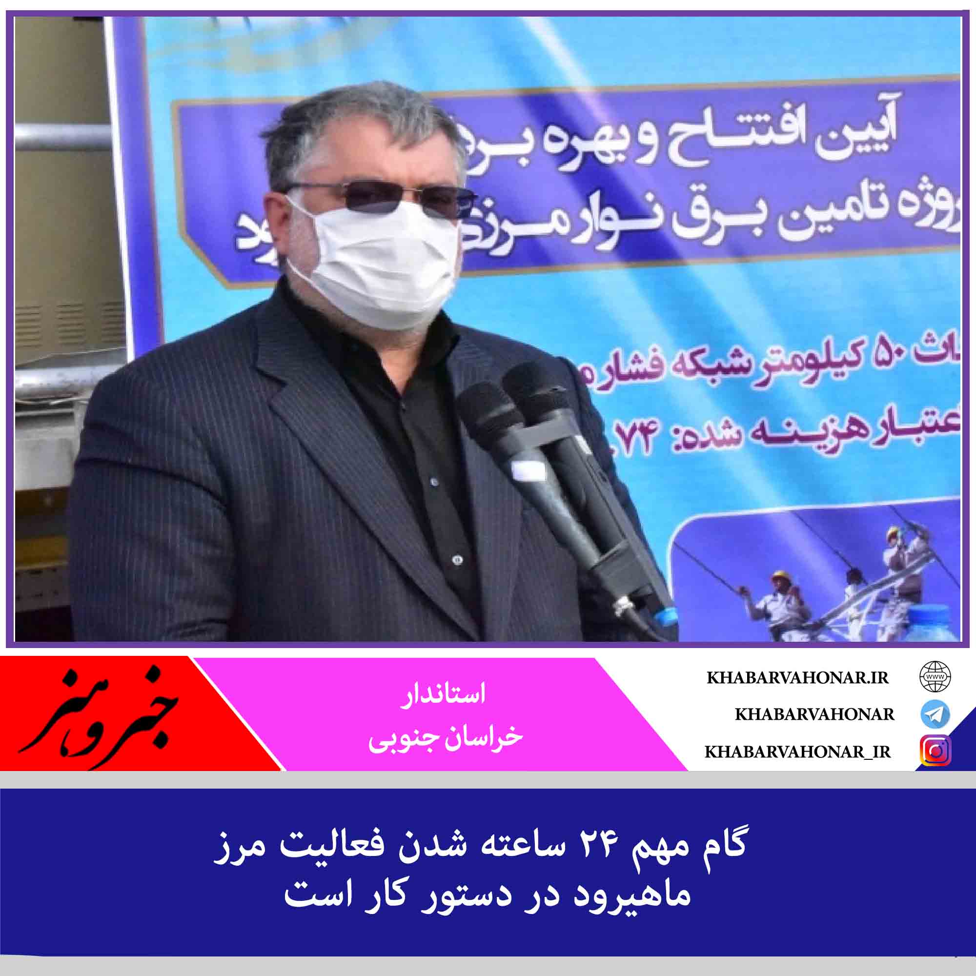 استاندار خراسان جنوبی گفت: برای ۲۴ ساعته شدن فعالیت مرز ماهیرود سربیشه در تلاش هستیم و تحقق این مهم نیازمند همکاری همه دستگاه‌ها است.