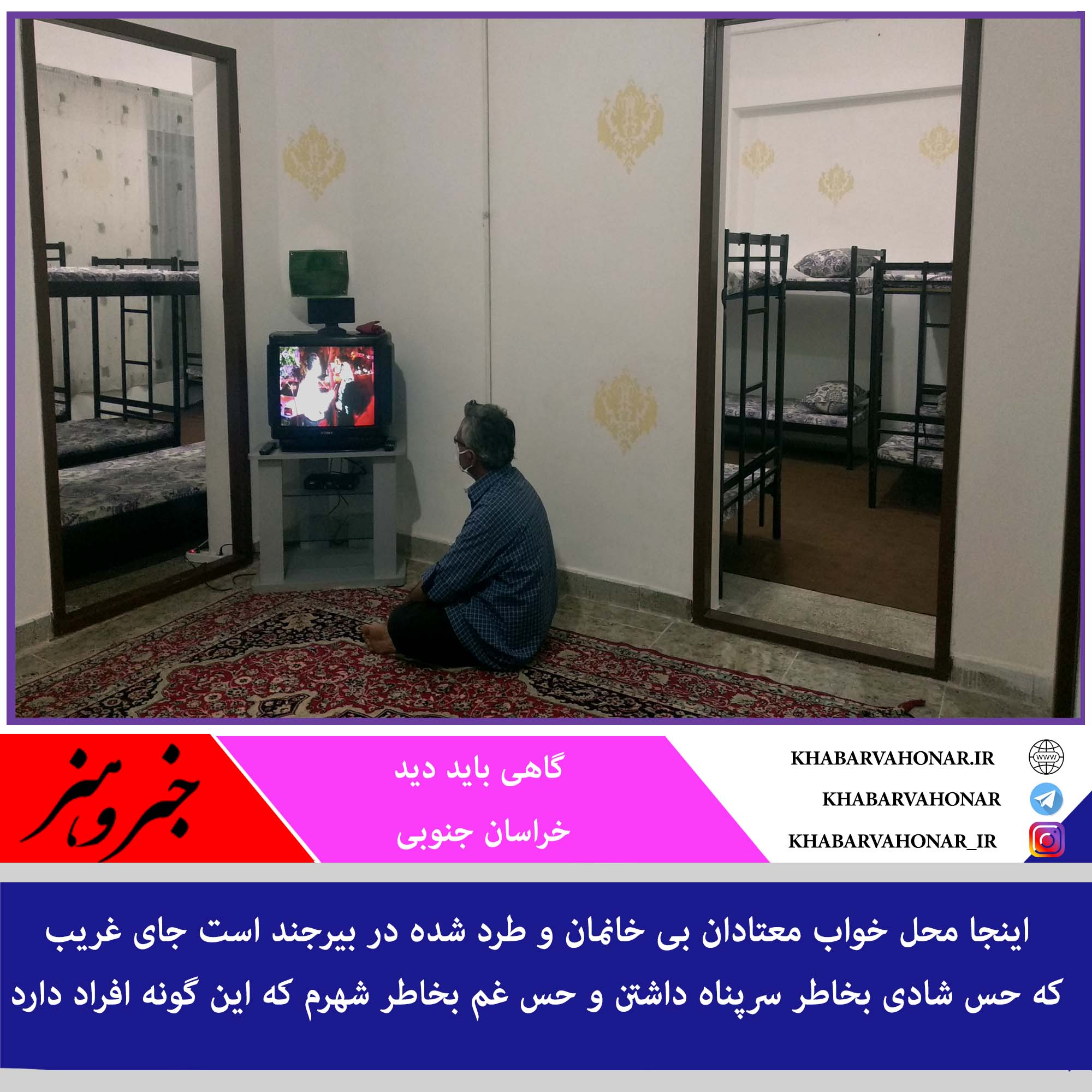 اینجا محل خواب معتادان بی خانمان و طرد شده در بیرجند است جای غریب که حس شادی بخاطر سرپناه داشتن و حس غم بخاطر شهرم که این گونه افراد دارد