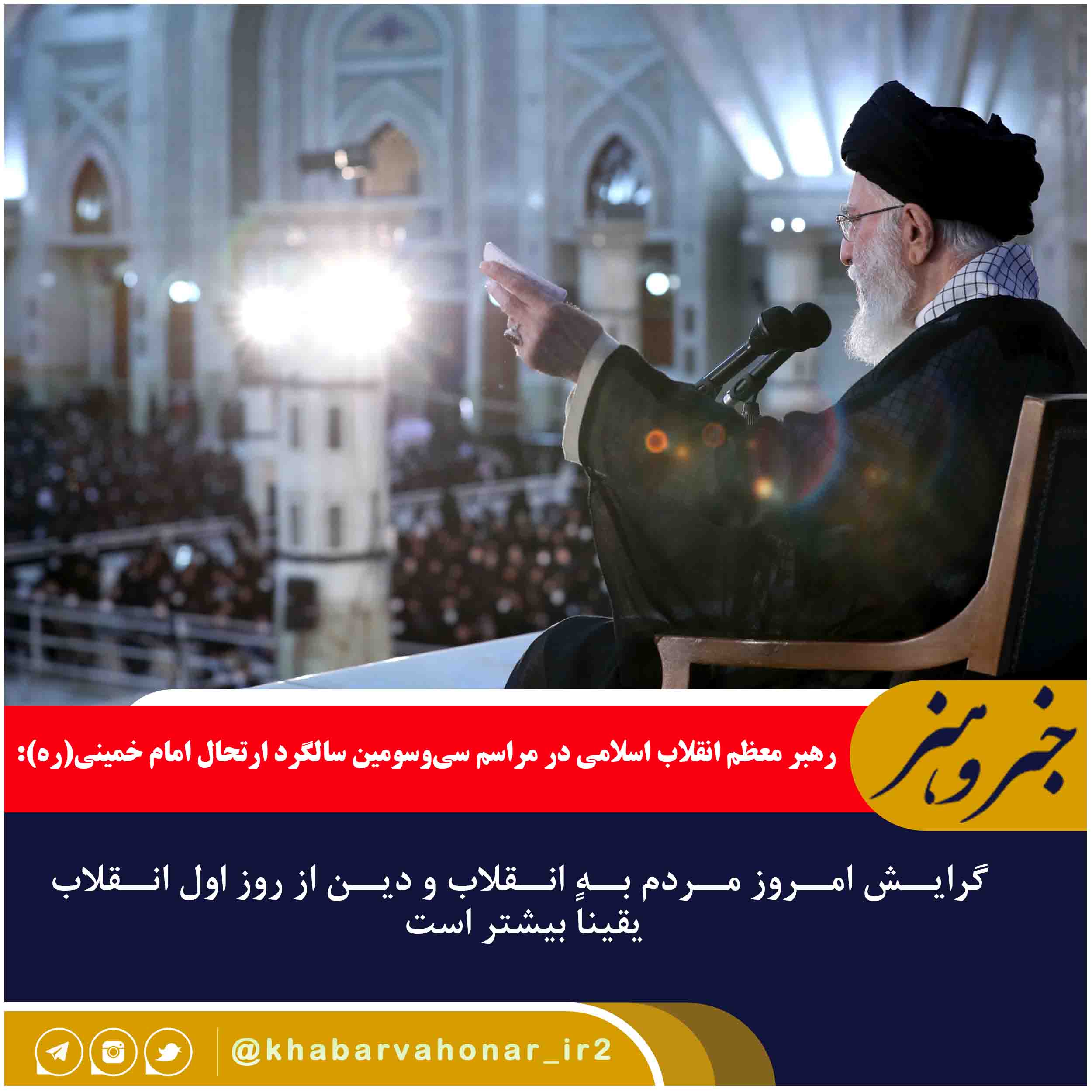 حضرت آیتالله خامنهای صبح امروز (شنبه) در اجتماع پرشور مردم در مرقد مطهر رهبر کبیر انقلاب به مناسبت سیوسومین سالگرد عروج آن عزیز سفر کرده، امام خمینی را روح جمهوری اسلامی، شخصیتی حقیقتاً استثنایی وامامِ «دیروز و امروز و فردای ملت ایران» خواندند و تأکید کردند: نسل جوان و هوشمند کنونی برای اداره آینده کشور و رساندن ملت به قلههای پر شکوه به نرمافزاری مطمئن، جامع، شتابدهنده وتحولآفرین یعنی درسها و گفتار و رفتار امام نیاز دارد.
