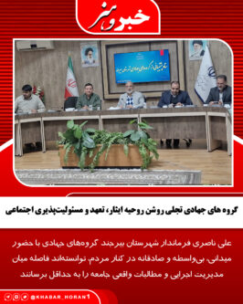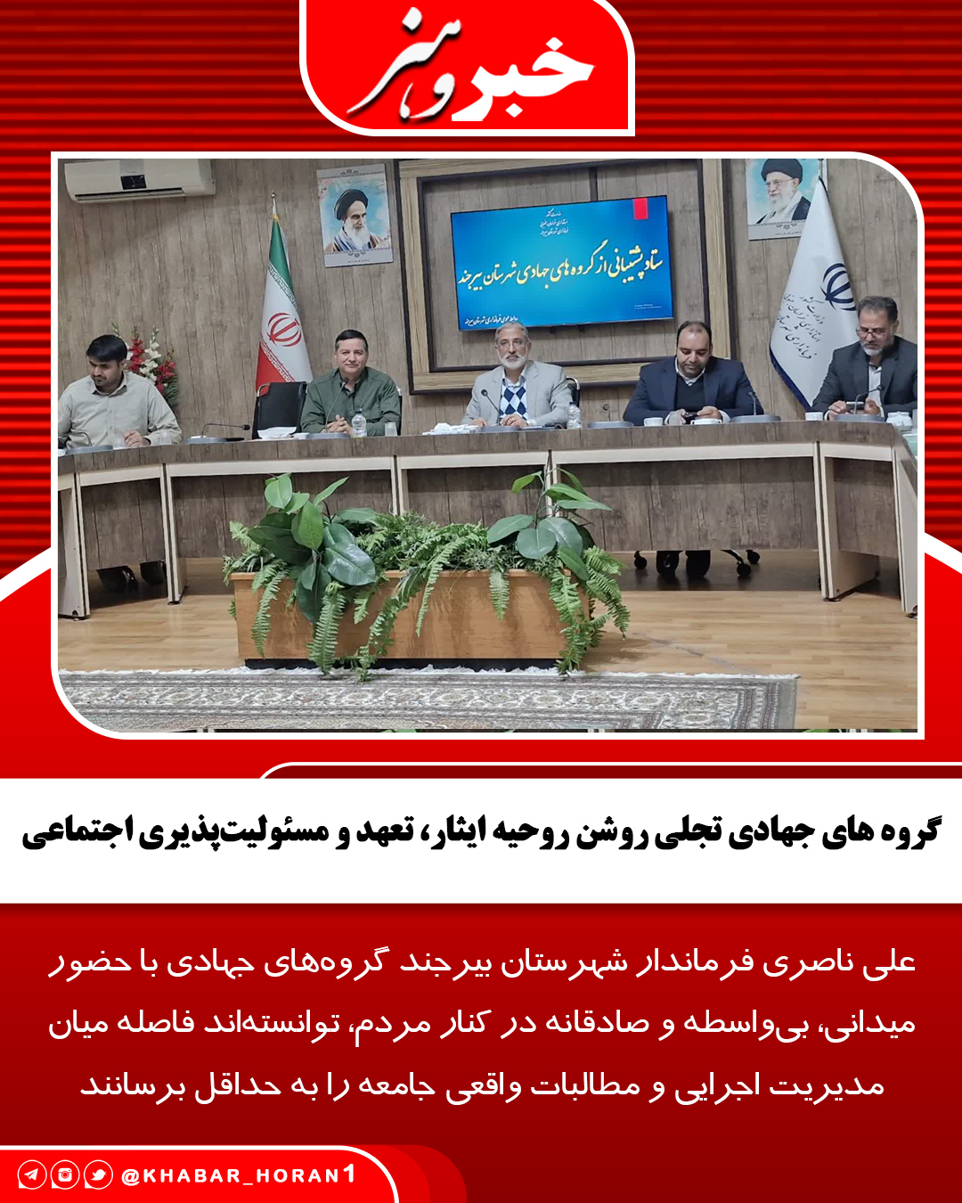 🔸 به گزارش  خبر و هنر فرماندار شهرستان بیرجند با تأکید بر ضرورت حمایت عملیاتی و هدفمند از گروه‌های جهادی تصریح کرد: ستاد پشتیبانی از گروه‌های جهادی باید با رویکردی مسئله‌محور و تسهیل‌گر، زمینه حضور مؤثر، هدفمند و سازمان‌یافته جهادگران را در حوزه‌های عمرانی، اجتماعی، فرهنگی و محرومیت‌زدایی فراهم کند و اجازه ندهد موانع اداری مانعی بر سر راه این جریان مردمی شود.