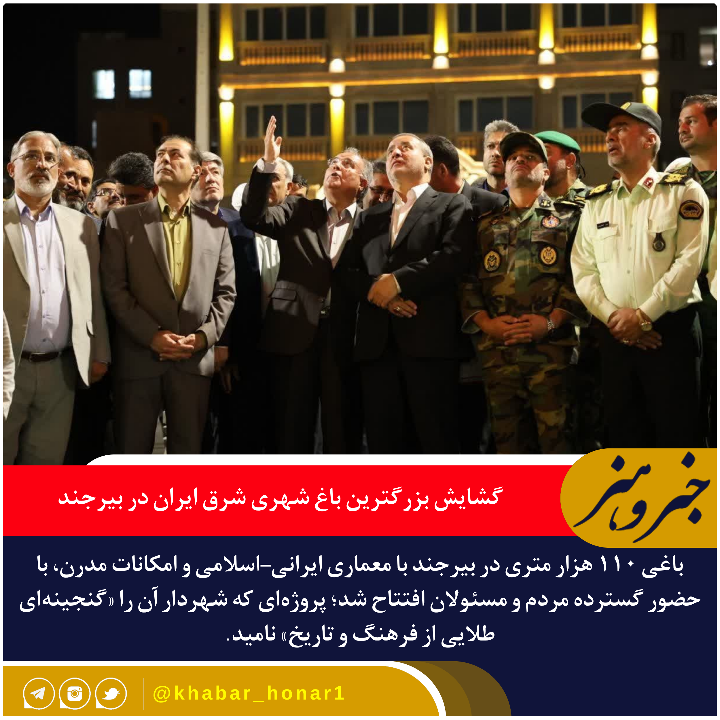 به گزارش «خبر و هنر»، شامگاه نهم مهرماه، بیرجند شاهد افتتاح رسمی بزرگترین باغ شهری شرق کشور بود؛ مجموعهای که با طراحی تلفیقی از اصالت ایرانی و نیازهای امروز شهرنشینی، سرانه فضای سبز شهر را ارتقا بخشیده است.