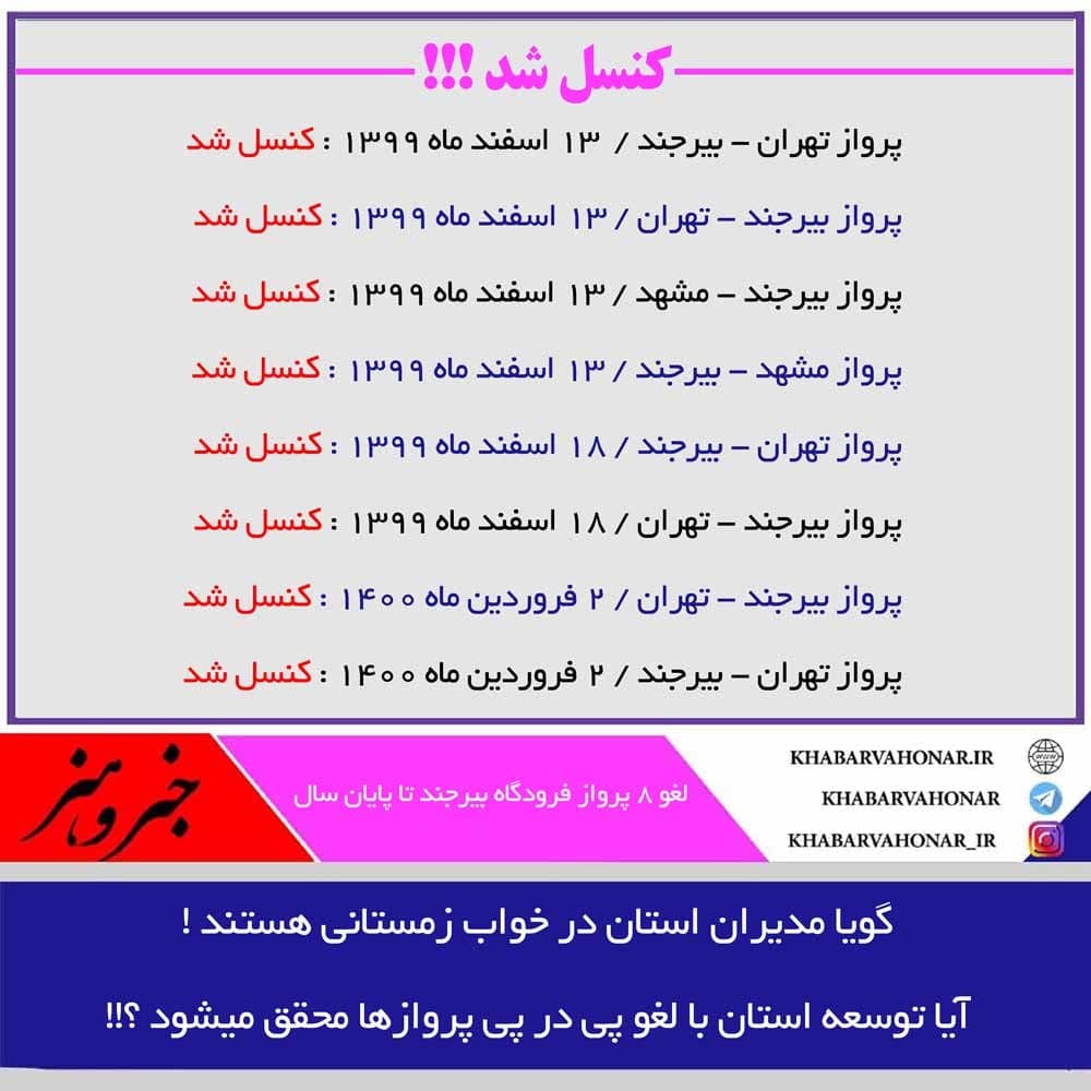 لغو ۸ پرواز فرودگاه بیرجند تا پایان سال :