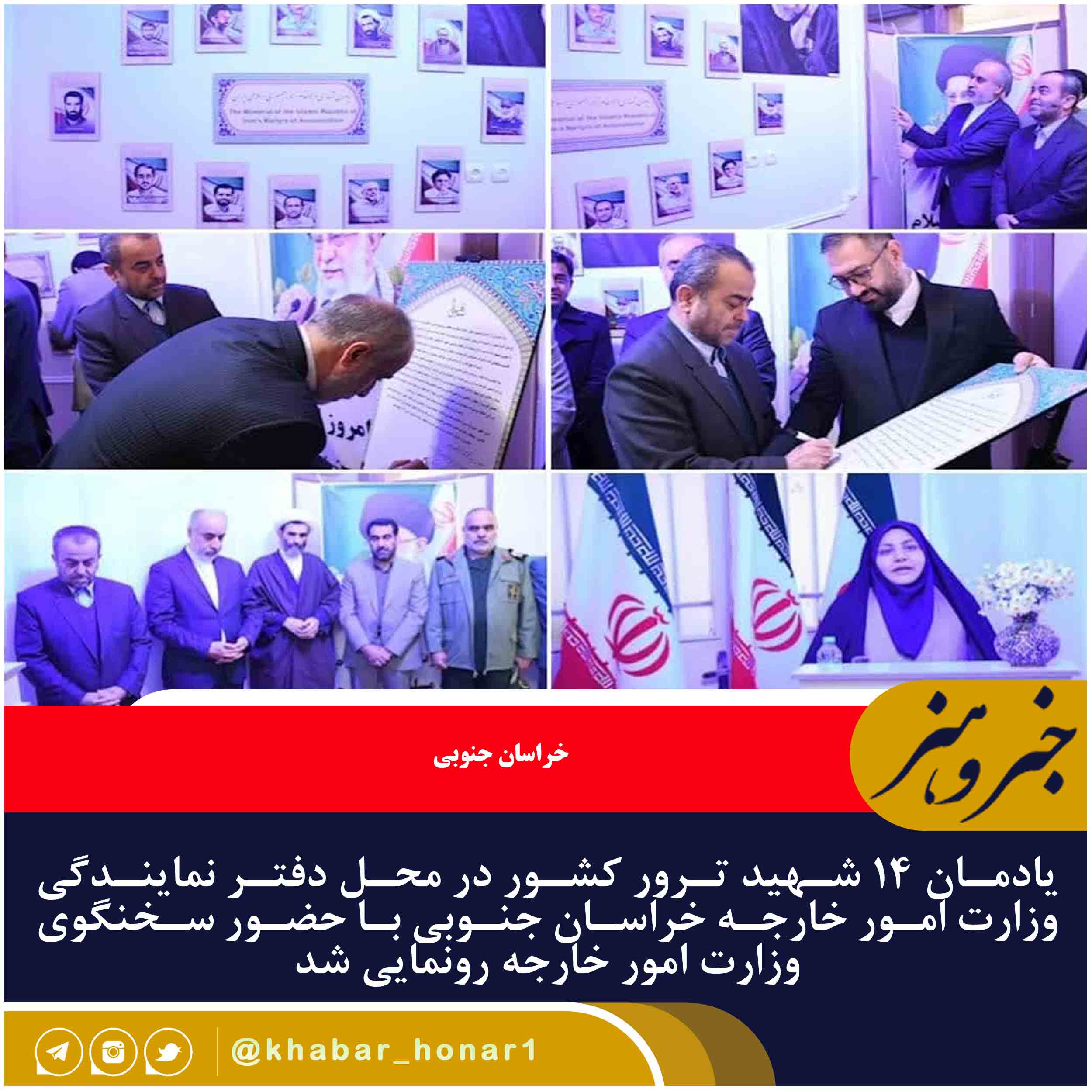 یادمان ۱۴ شهید ترور کشور در محل دفتر نمایندگی وزارت امور خارجه خراسان جنوبی با حضور سخنگوی وزارت امور خارجه رونمایی شد.