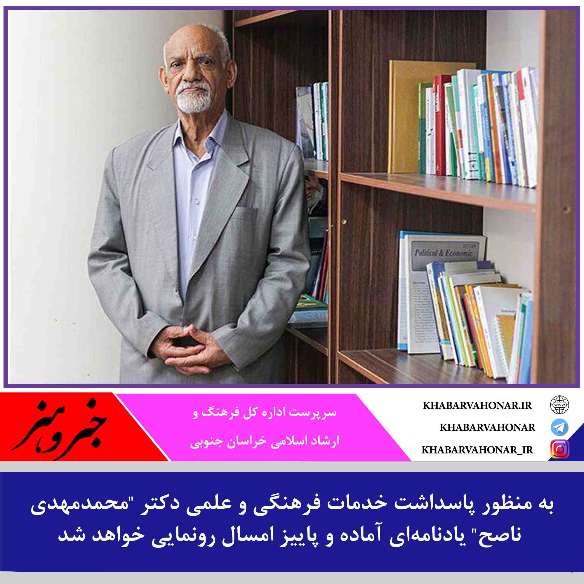 سرپرست اداره کل فرهنگ و ارشاد اسلامی خراسان جنوبی گفت: به منظور پاسداشت خدمات فرهنگی و علمی دکتر “محمدمهدی ناصح” یادنامهای آماده و پاییز امسال رونمایی خواهد شد.