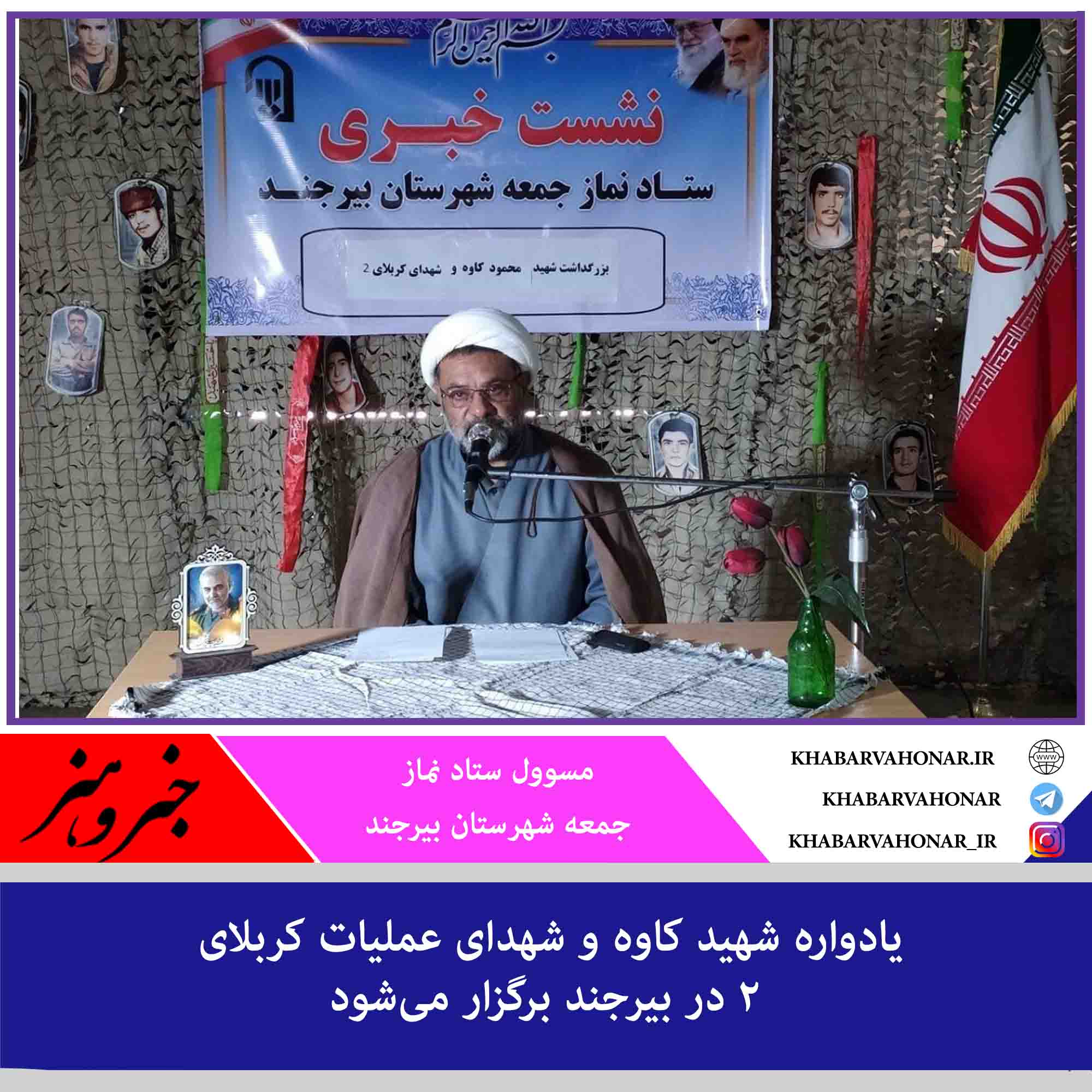 مسوول ستاد نماز جمعه شهرستان بیرجند گفت: یادواره سردار شهید محمود کاوه و شهدای عملیات کربلای ۲ روز سهشنبه همزمان با سالروز رحلت پیامبر اکرم (ص) و شهادت امام حسن مجتبی (ع) در بیرجند برگزار میشود.
