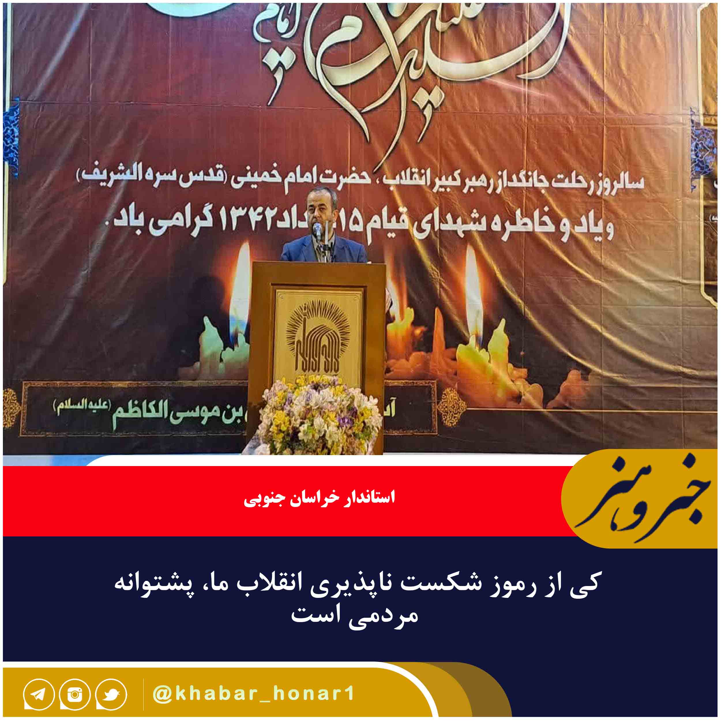 ?استاندار خراسان جنوبی گفت: یکی از رموز شکست ناپذیری انقلاب ما، پشتوانه مردمی است.
