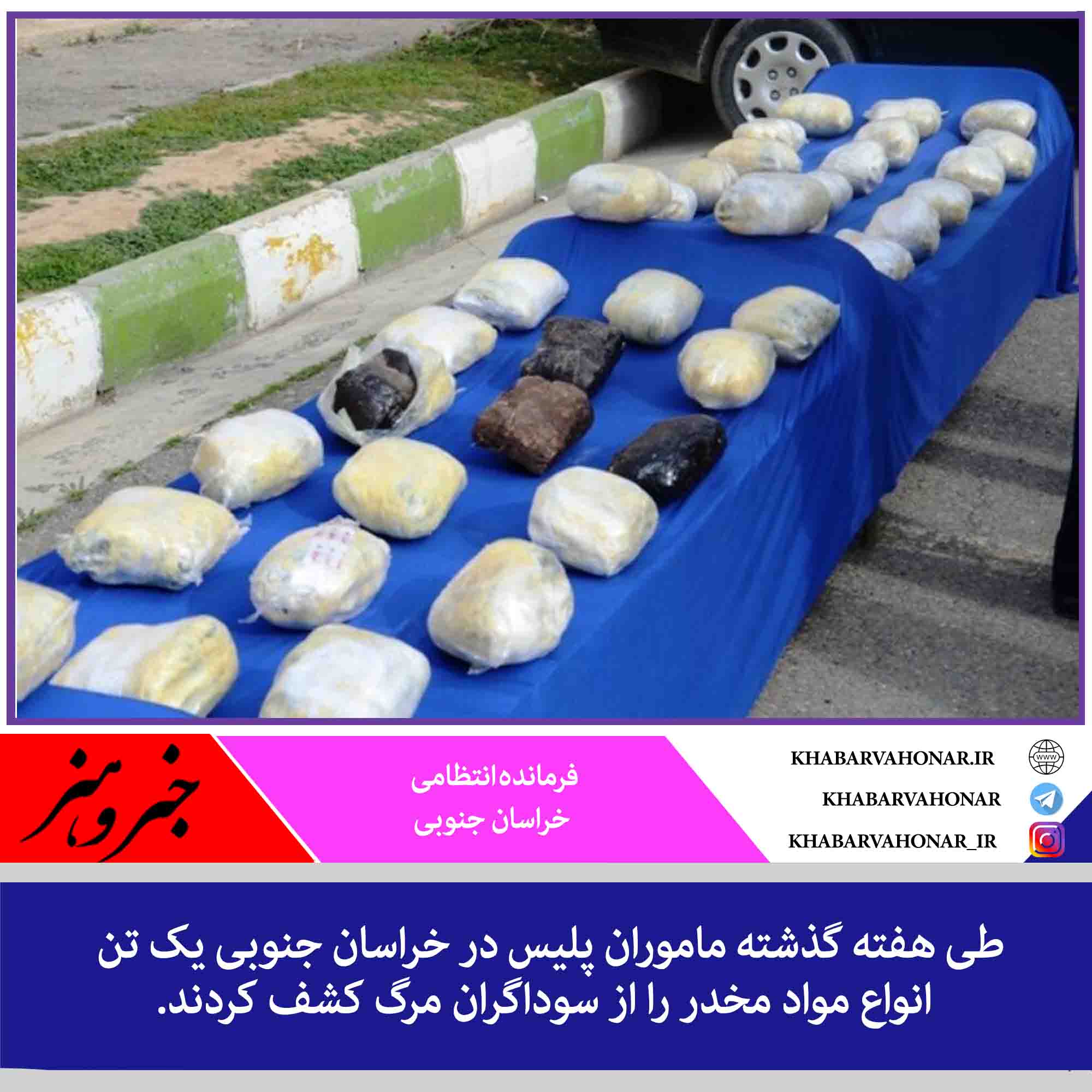 فرمانده انتظامی خراسان جنوبی گفت: طی هفته گذشته ماموران پلیس در خراسان جنوبی یک تن انواع مواد مخدر را از سوداگران مرگ کشف کردند.