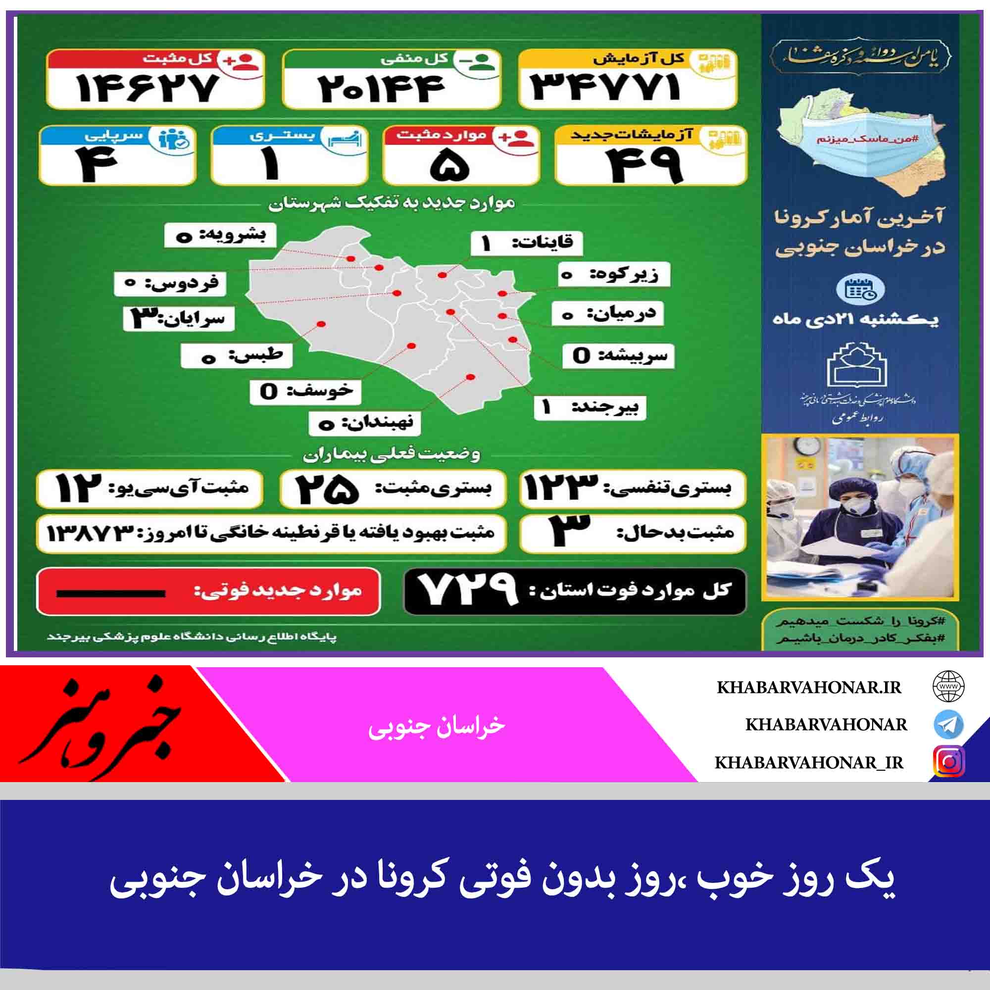 یک روز خوب ،روز بدون فوتی کرونا در خراسان جنوبی