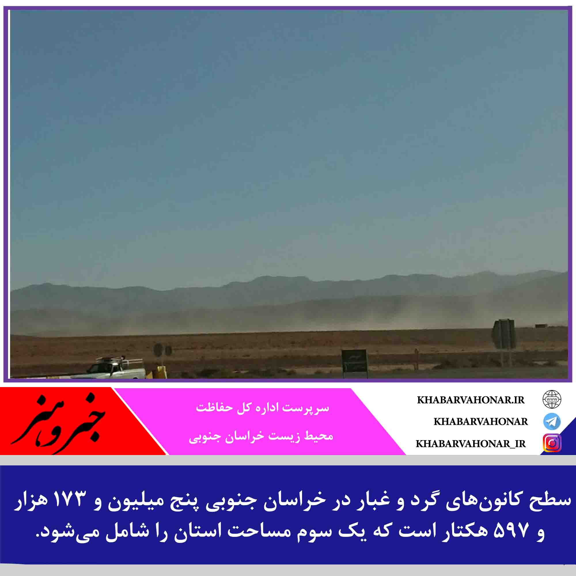 سرپرست اداره کل حفاظت محیط زیست خراسان جنوبی گفت: سطح کانونهای گرد و غبار در خراسان جنوبی پنج میلیون و ۱۷۳ هزار و ۵۹۷ هکتار است که یک سوم مساحت استان را شامل میشود.