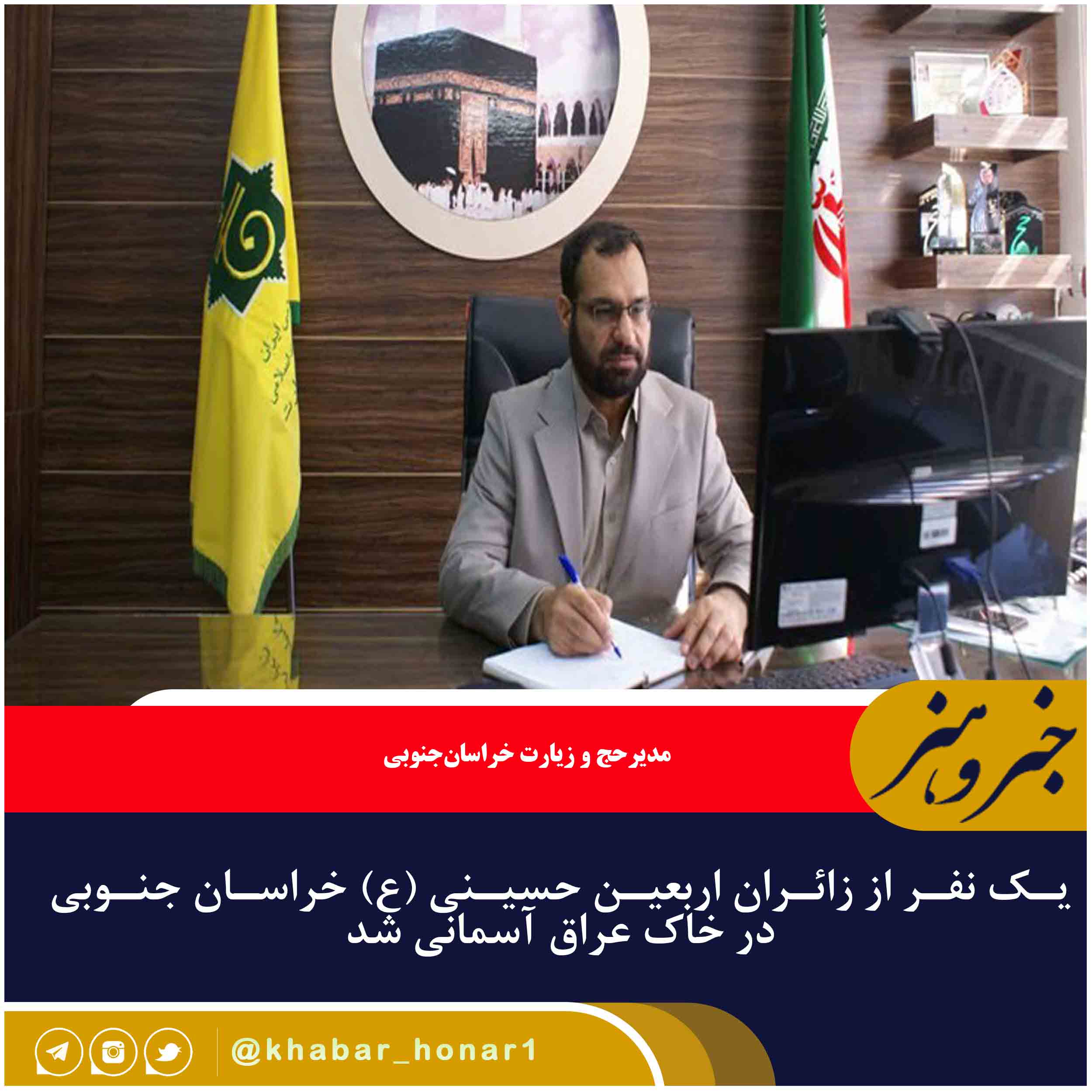 مدیرحج و زیارت خراسانجنوبی گفت: یک نفر از زائران اربعین حسینی (ع) استان در خاک عراق آسمانی شد.