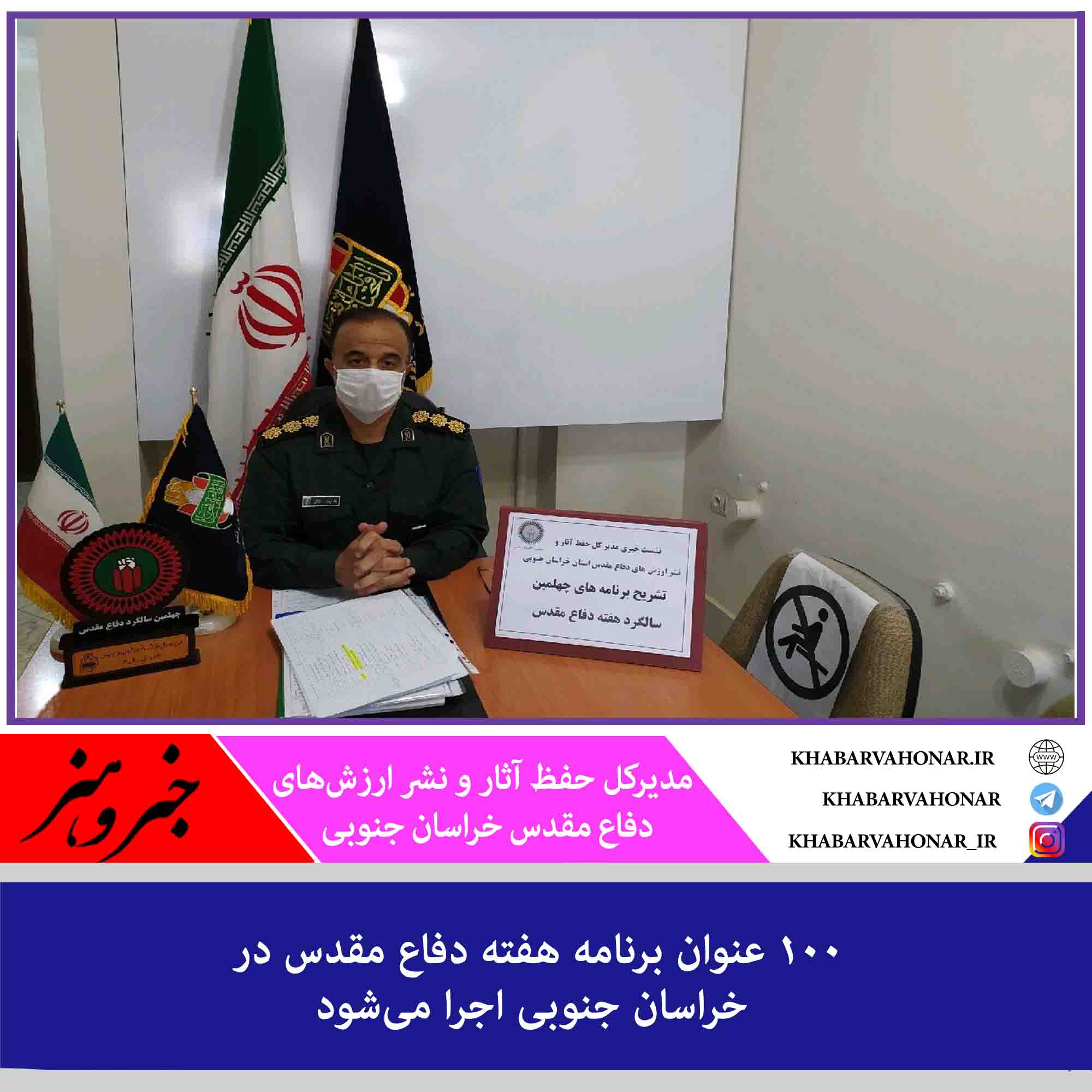 مدیرکل حفظ آثار و نشر ارزشهای دفاع مقدس خراسان جنوبی گفت: همزمان با گرامیداشت چهلمین سالگرد دفاع مقدس ۱۰۰ برنامه محوری در استان با شعار«ما قوی هستیم» اجرا میشود.