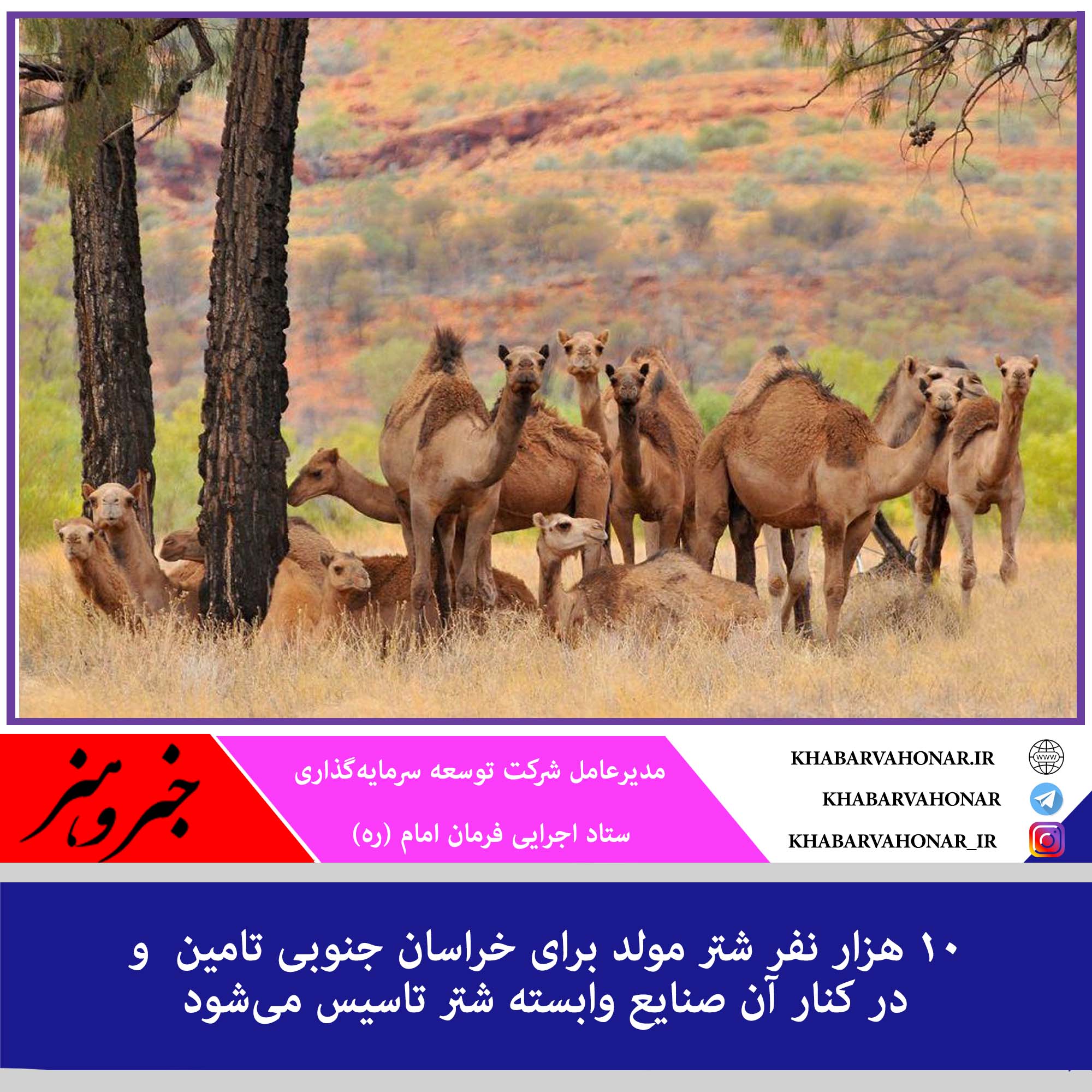 مدیرعامل شرکت توسعه سرمایهگذاری ستاد اجرایی فرمان امام (ره) یکی از مزیتهای استان خراسان جنوبی را پرورش شتر اعلام کرد و ادامه داد: با توجه به ظرفیت بیابان و مرتع در این استان به عنوان دومین استان دارای جمعیت شتر، ظرفیت خوبی برای اشتغالزایی پیشبینی شد.