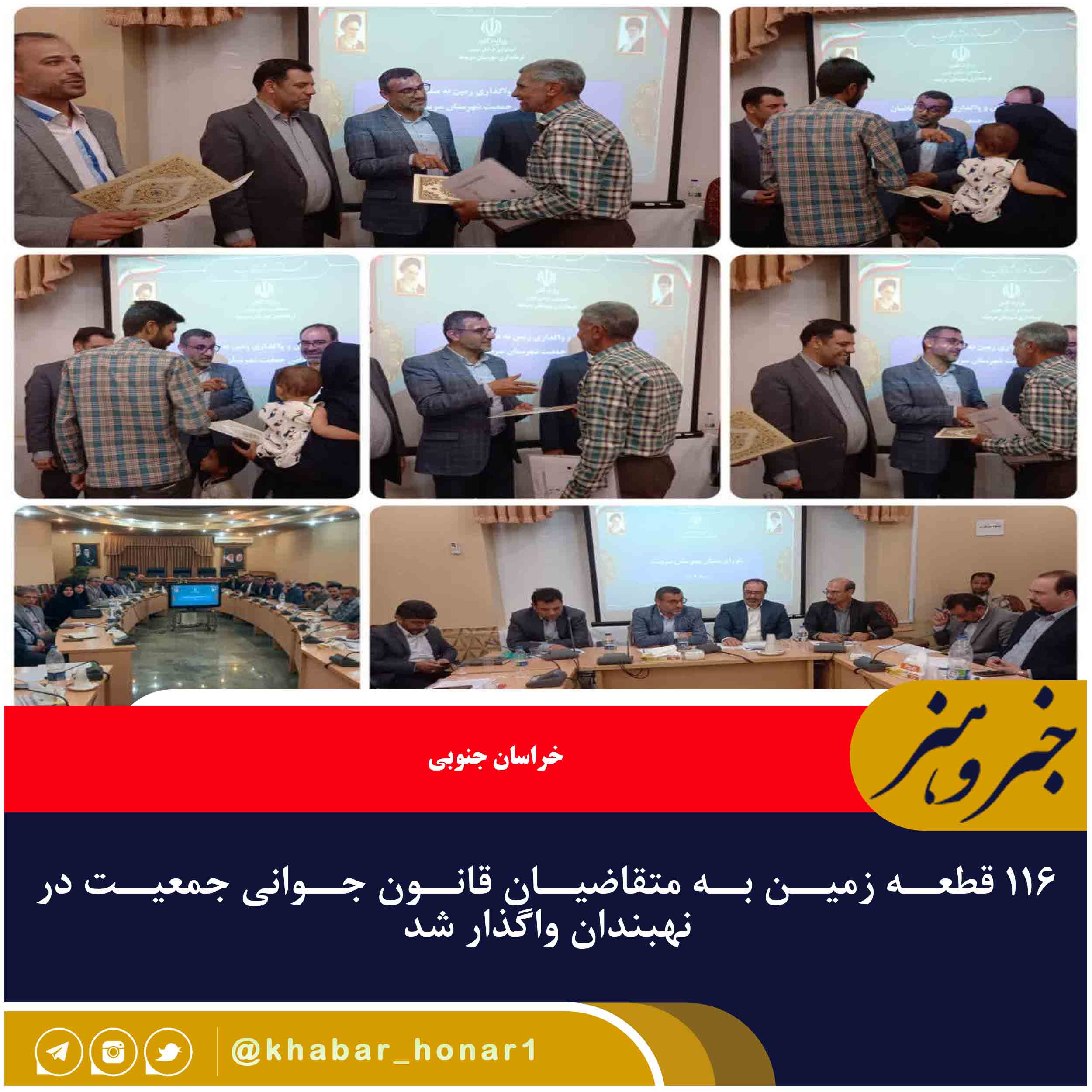 ۱۱۶ قطعه زمین به متقاضیان قانون حمایت از خانواده و جوانی جمعیت (فرزند سوم و بیشتر) در شهر نهبندان به مناسبت عید غدیر واگذار شد.