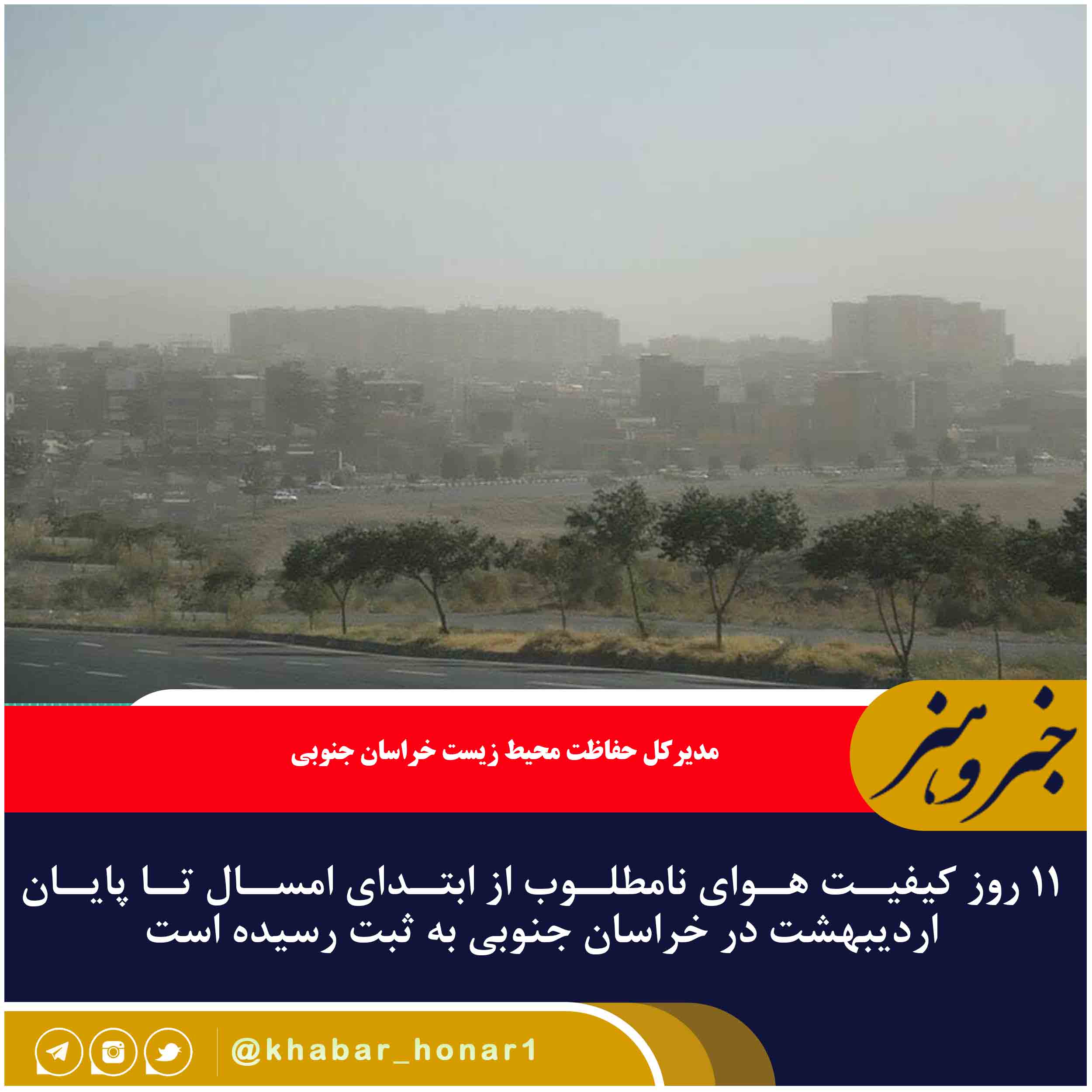 ۱۱ روز کیفیت هوای نامطلوب از ابتدای امسال تا پایان اردیبهشت در خراسان جنوبی به ثبت رسیده است