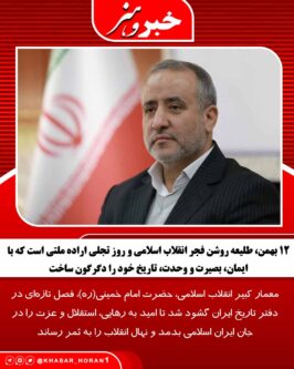 🔹پیام استاندار خراسان جنوبی به مناسبت سالروز ورود تاریخی امام خمینی (ره)پیام استاندار خراسان جنوبی به مناسبت سالروز ورود تاریخی امام خمینی (ره) ۱۲ بهمن، طلیعه روشن فجر انقلاب اسلامی و روز تجلی اراده ملتی است که با ایمان، بصیرت و وحدت، تاریخ خود را دگرگون ساخت. روزی که با بازگشت معمار کبیر انقلاب اسلامی، حضرت امام خمینی(ره)، فصل تازهای در دفتر تاریخ ایران گشود شد تا امید به رهایی، استقلال و عزت را در جان ایران اسلامی بدمد و نهال انقلاب را به ثمر رساند.
