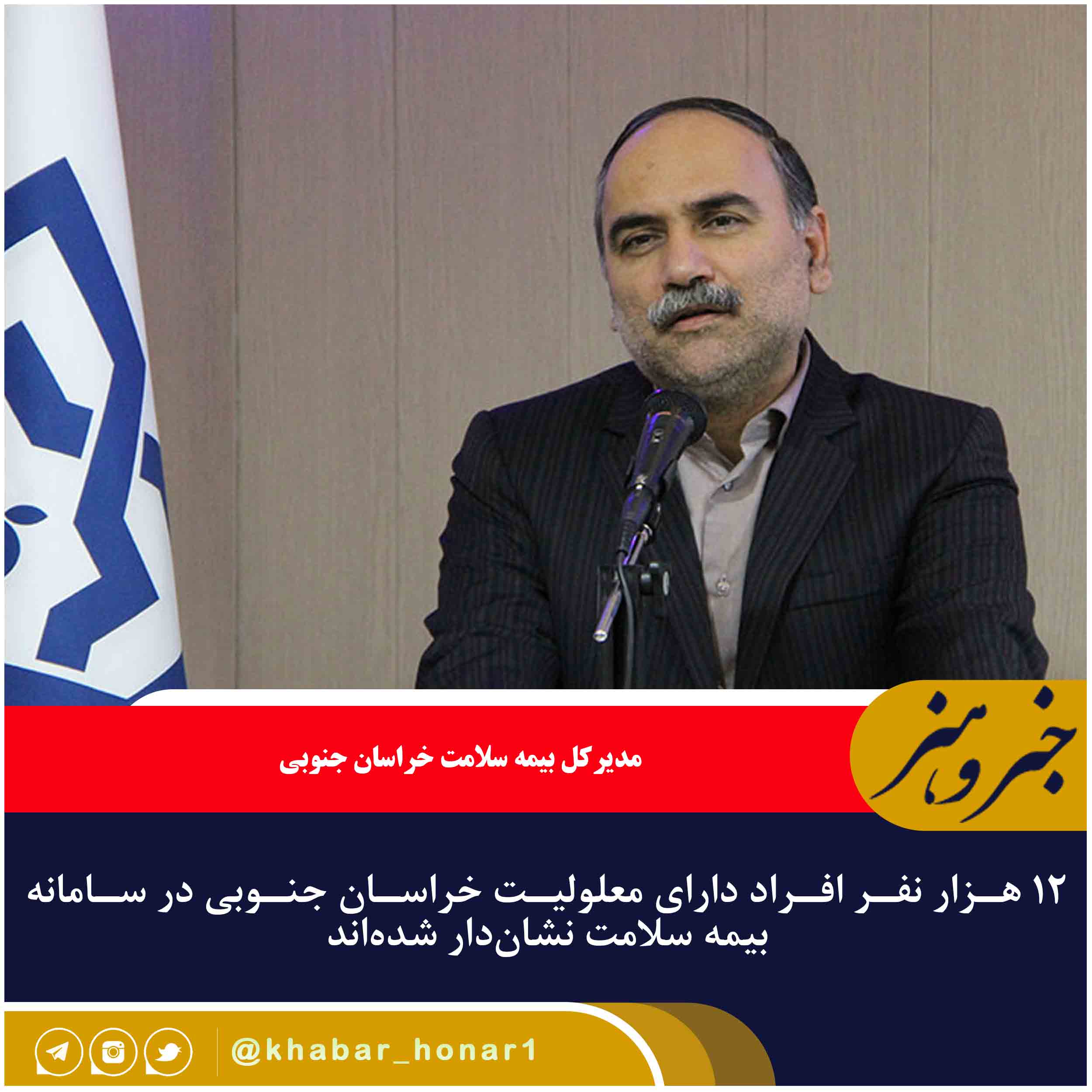 مدیرکل بیمه سلامت خراسان جنوبی گفت: معلولان برای بهرهمندی از خدمات بیمه سلامت باید نشاندار شوند و تاکنون در این استان حدود ۱۲ هزار نفر افراد دارای معلولیت در سامانه بیمه سلامت نشاندار شدهاند.