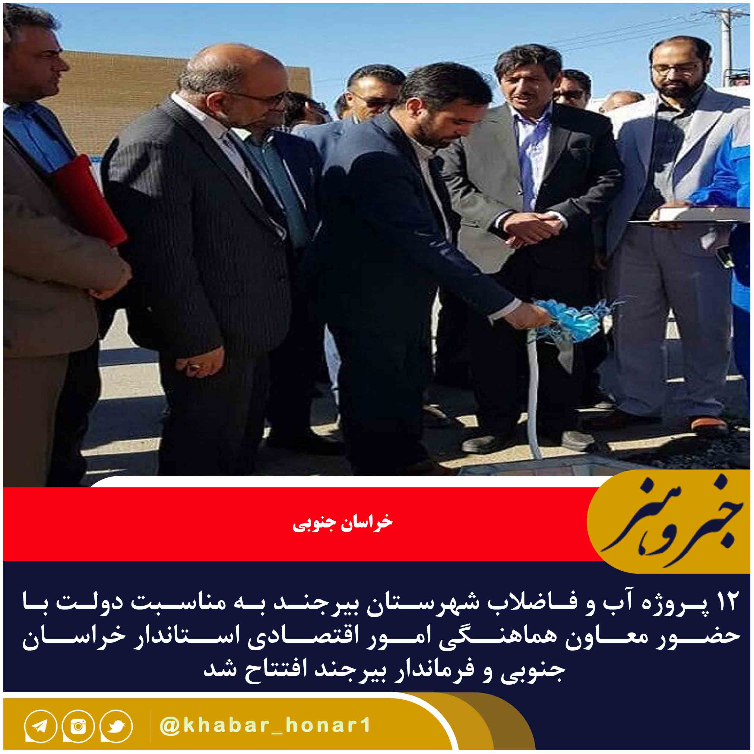 ۱۲ پروژه آب و فاضلاب شهرستان بیرجند به مناسبت دولت با حضور معاون هماهنگی امور اقتصادی استاندار خراسان جنوبی و فرماندار بیرجند افتتاح شد.