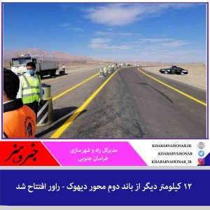 ۱۲ کیلومتر دیگر از پروژه احداث باند دوم محور دیهوک – راور در استان خراسان جنوبی زیر بار ترافیک رفت.