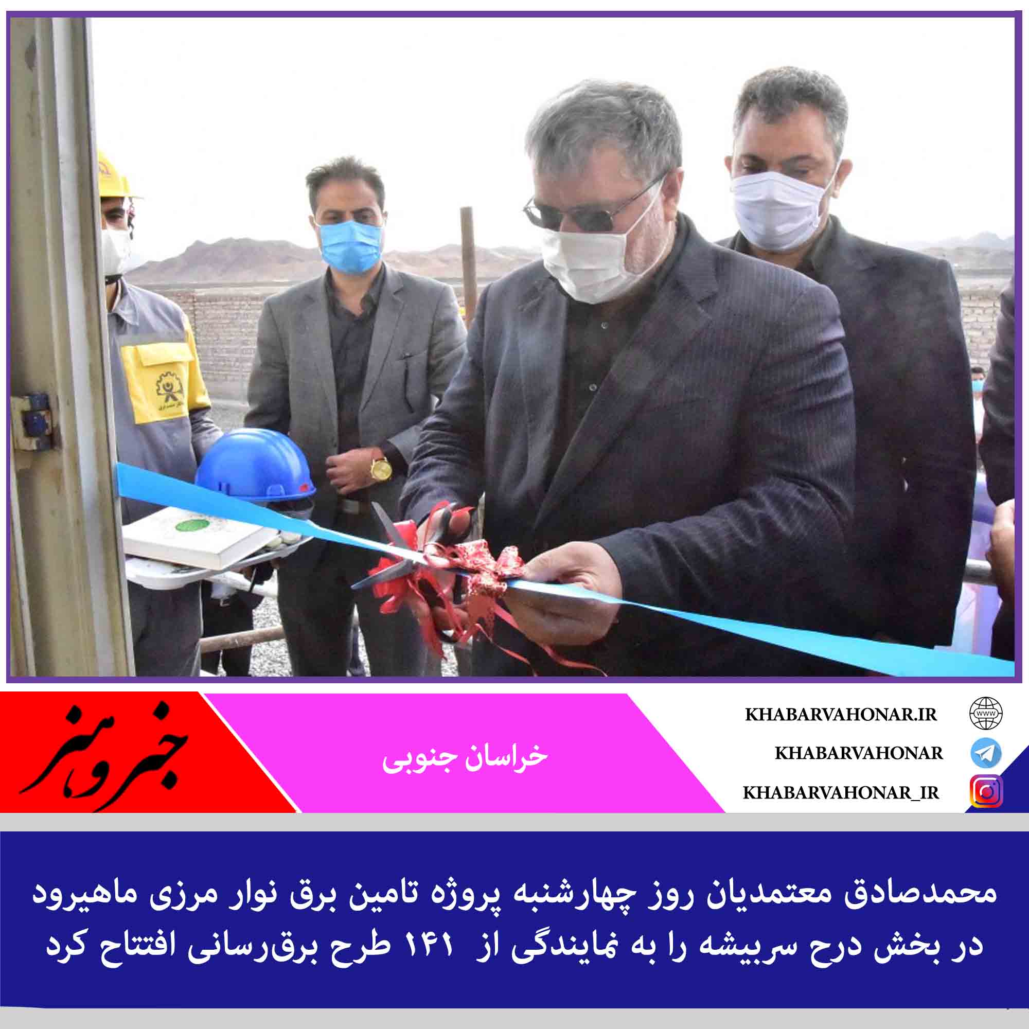 به گزارش ایرنا محمدصادق معتمدیان روز چهارشنبه پروژه تامین برق نوار مرزی ماهیرود در بخش درح سربیشه را به نمایندگی از این طرحها افتتاح کرد.
