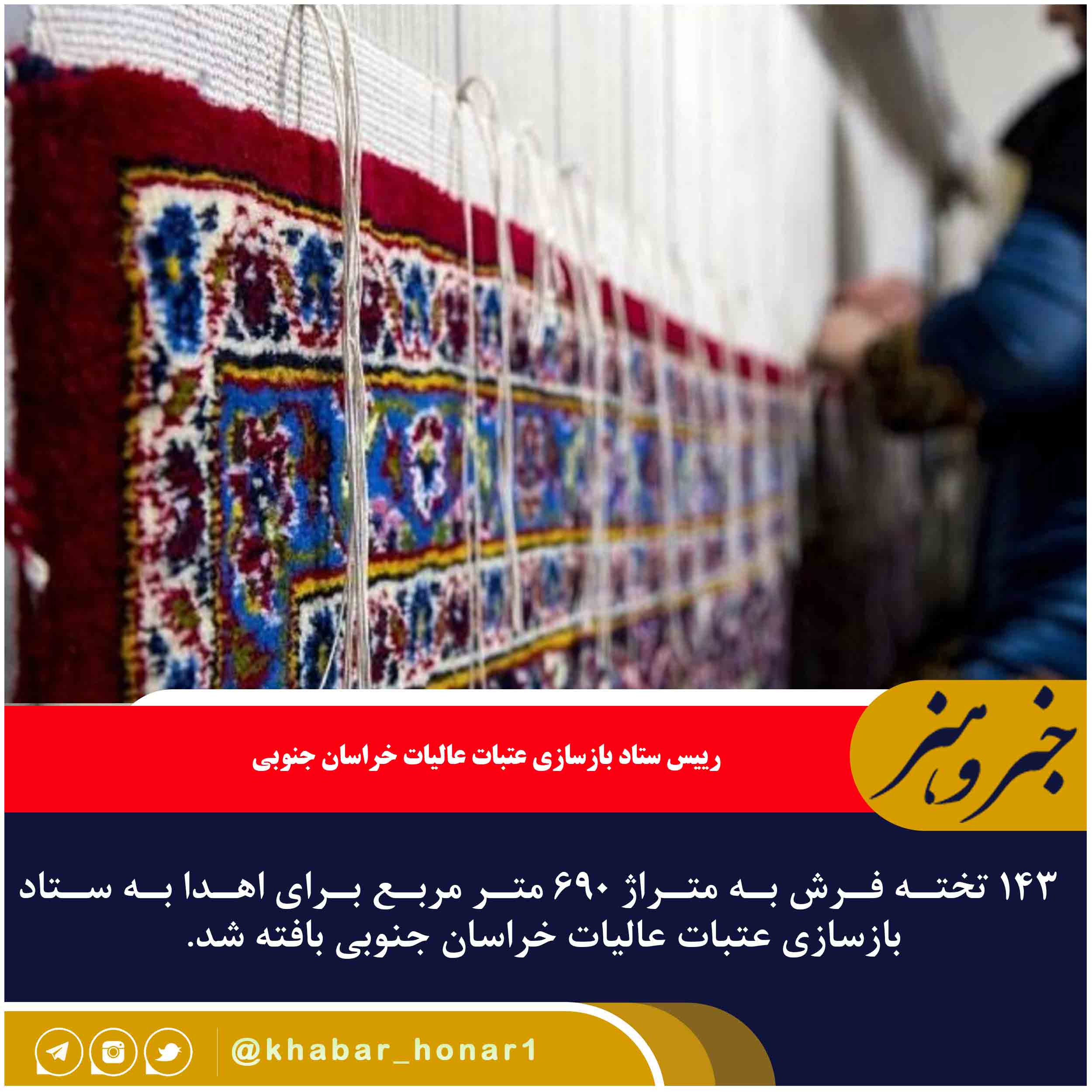 رییس ستاد بازسازی عتبات عالیات خراسان جنوبی اظهار کرد: ۱۴۳ تخته فرش به متراژ ۶۹۰ متر مربع برای اهدا به ستاد بازسازی عتبات عالیات خراسان جنوبی بافته شد.