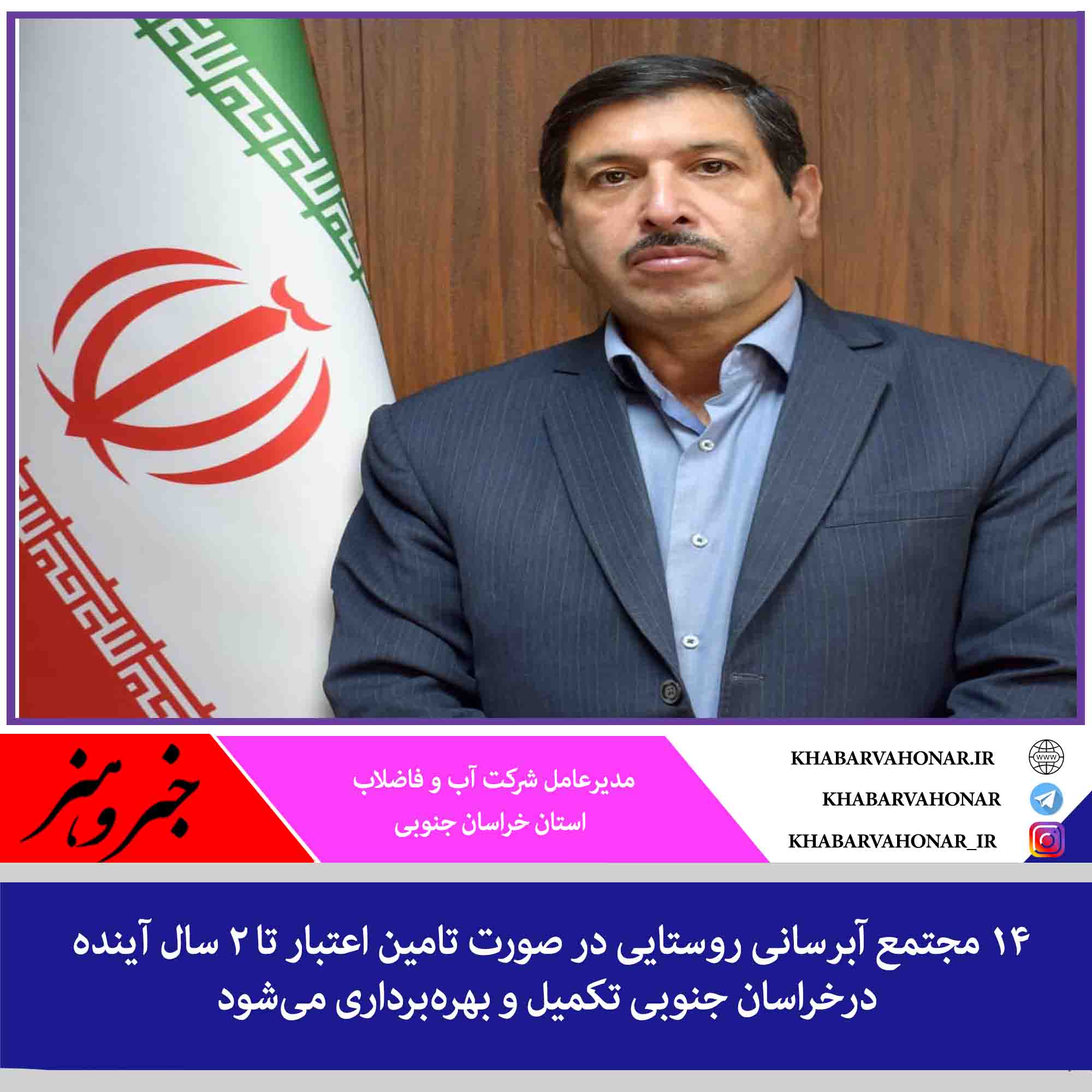 مدیرعامل شرکت آب و فاضلاب استان خراسان جنوبی گفت: ۱۴ مجتمع آبرسانی روستایی در صورت تامین اعتبار تا ۲ سال آینده در این استان تکمیل و بهرهبرداری میشود.