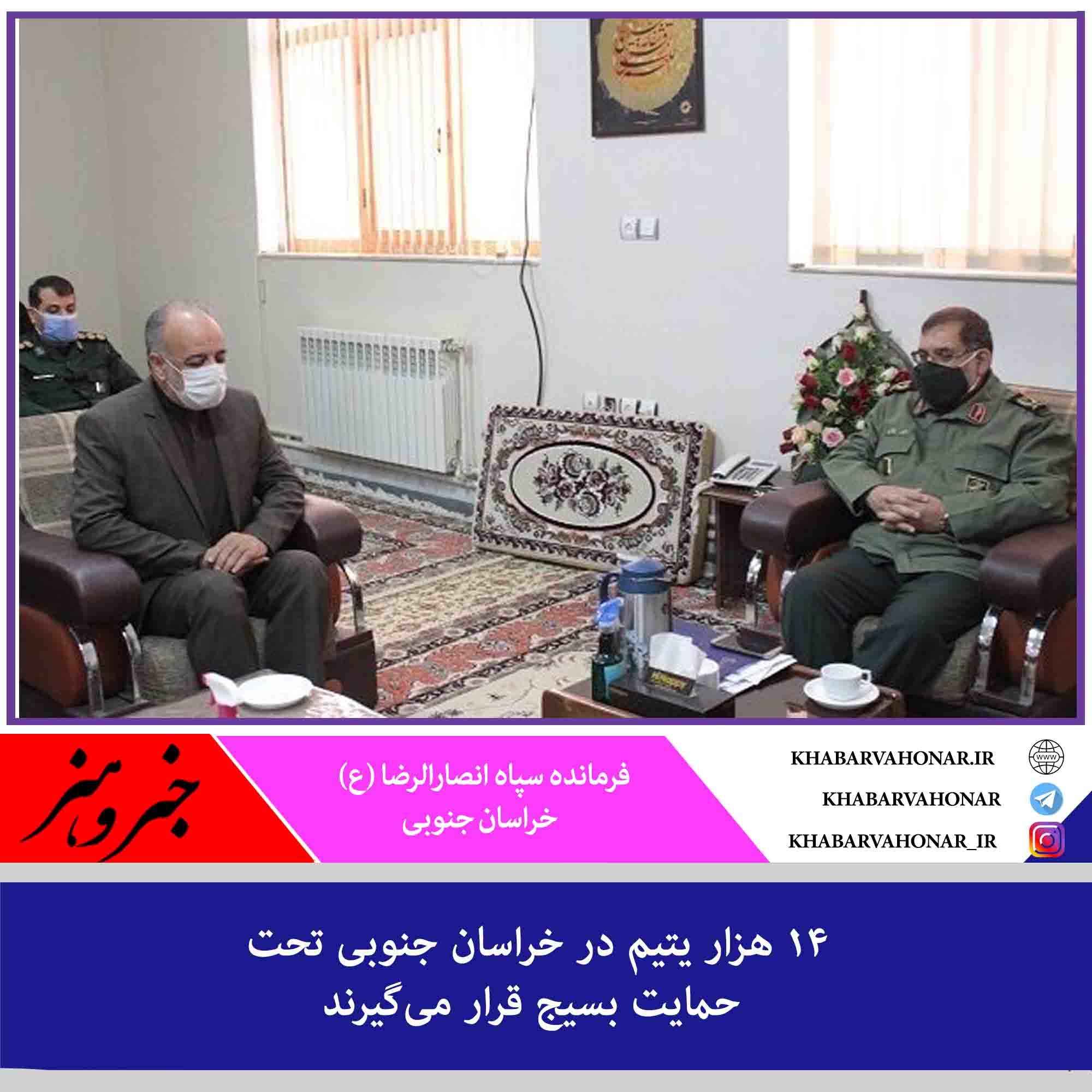 فرمانده سپاه انصارالرضا (ع) خراسان جنوبی گفت: براساس تفاهمنامه بین کمیته امداد امام خمینی (ره) و بسیج استان تا ماه مبارک رمضان ۱۴ هزار یتیم استان تحت حمایت تشکلهای مختلف بسیج قرار میگیرند.