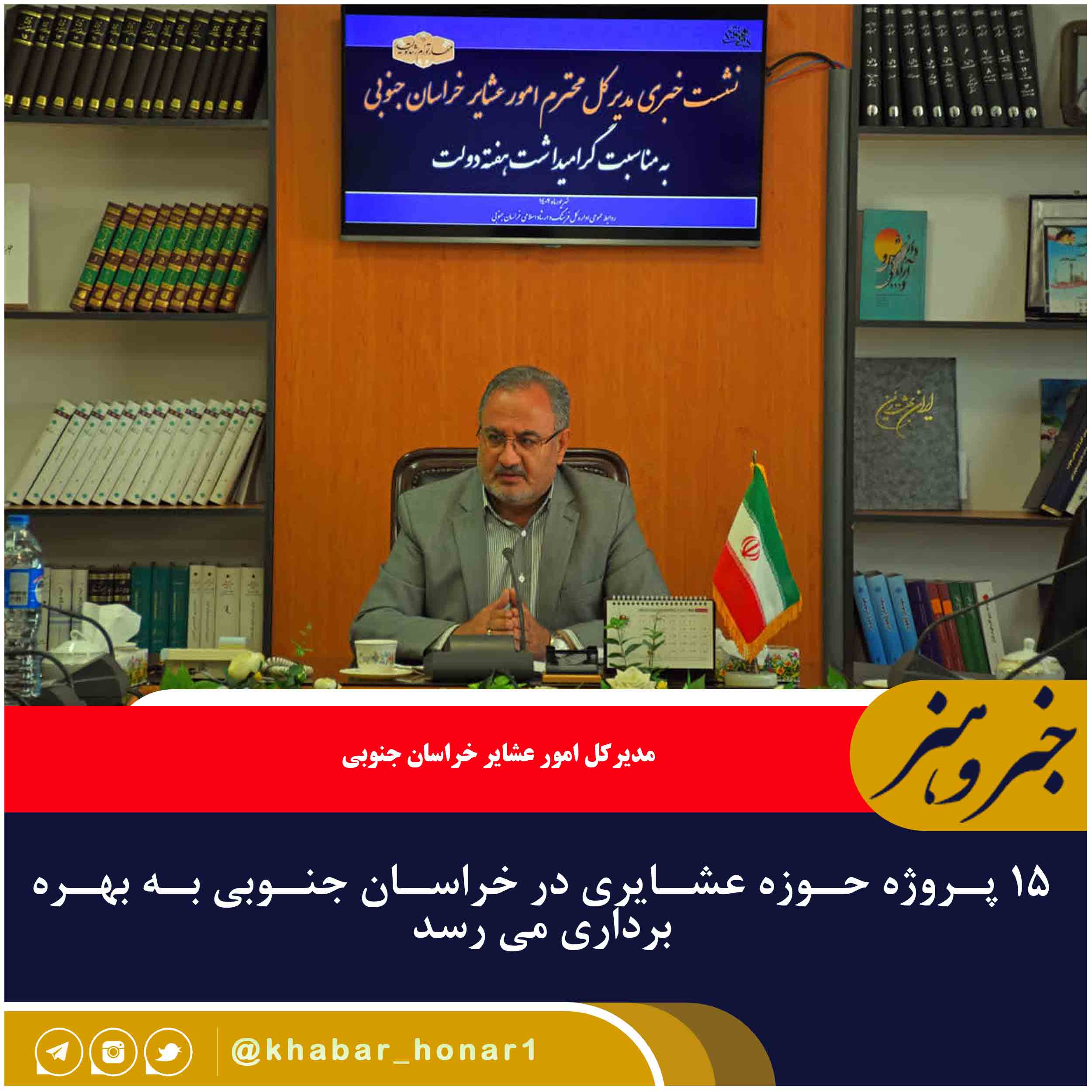 مدیرکل امور عشایر خراسان جنوبی گفت: طی هفته دولت ۱۵ پروژه حوزه عشایری افتتاح و یک پروژه کلنگ زنی می شود.