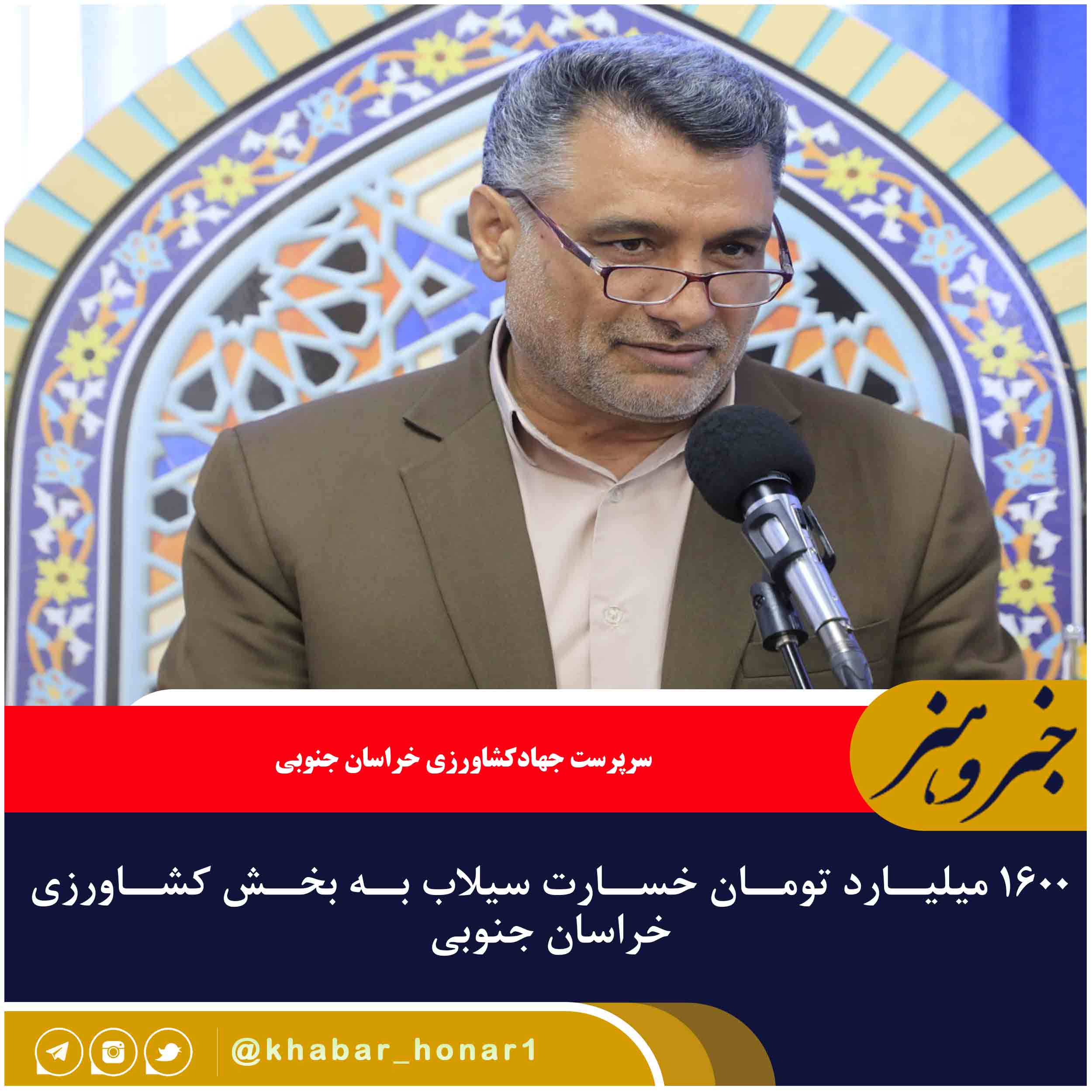 وی ادامه داد: هزار و ۶۰۰ میلیارد تومان خسارت به واسطه سیلابهای بهاری به بخش کشاورزی خراسان جنوبی اعم از قنوات و کانالها و جادههای دسترسی به مزارع و باغات کشاورزی وارد شد که پیگیر جبران آن هستیم.