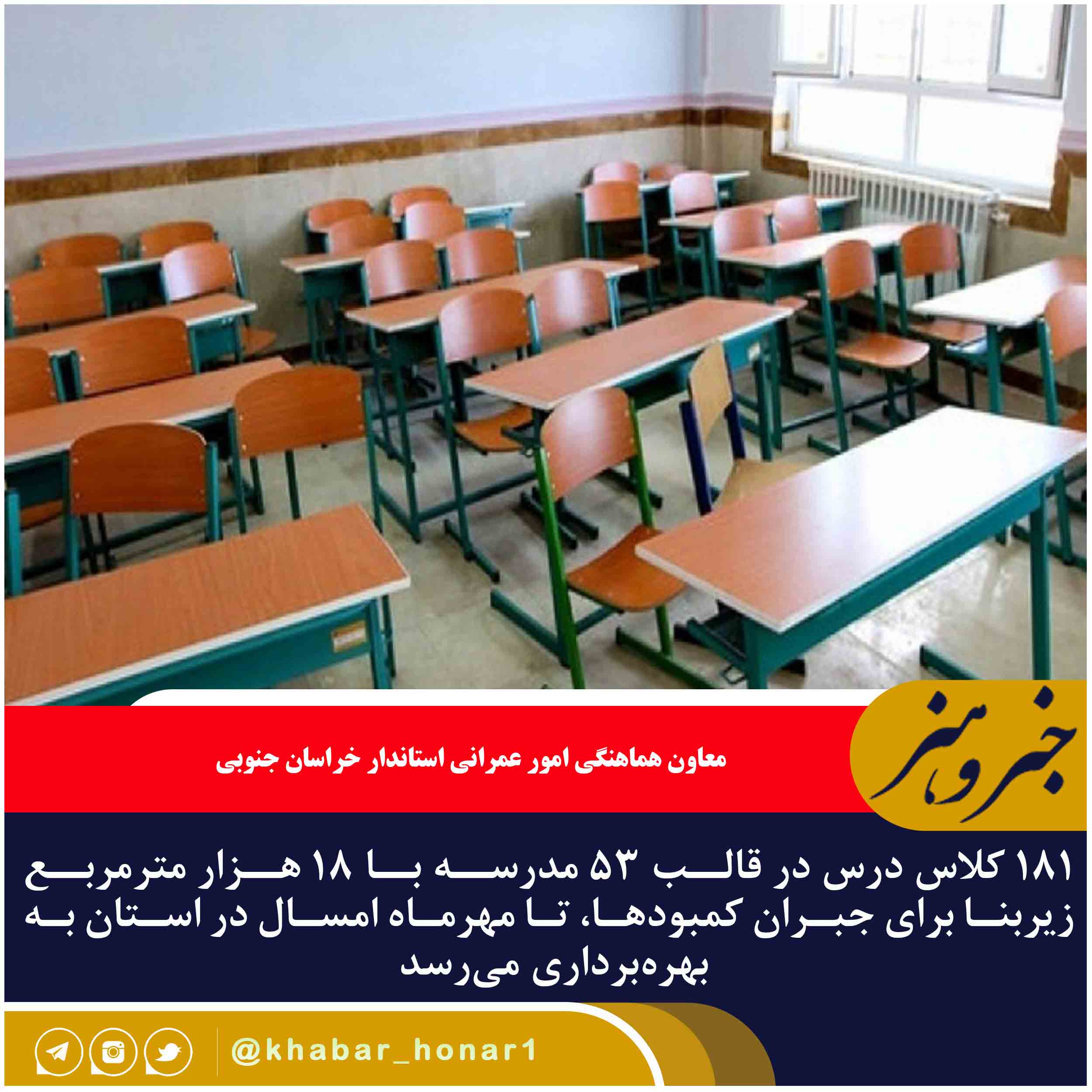 معاون هماهنگی امور عمرانی استاندار خراسان جنوبی گفت: ۱۸۱ کلاس درس در قالب ۵۳ مدرسه با ۱۸ هزار مترمربع زیربنا برای جبران کمبودها، تا مهرماه امسال در استان به بهرهبرداری میرسد.
