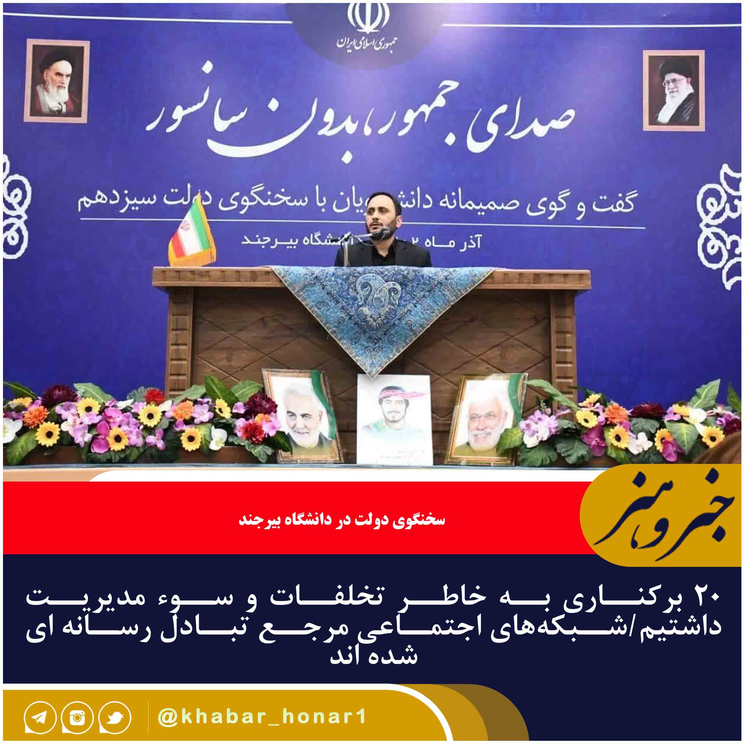 سخنگوی دولت در دانشگاه بیرجند گفت: هر جا فساد باشد تا از بین نرود، دولت از پا نمینشیند از همین رو در ۲ سال گذشته بیش از ۲۰ برکناری به خاطر تخلفات و سوء مدیریت داشتهایم.