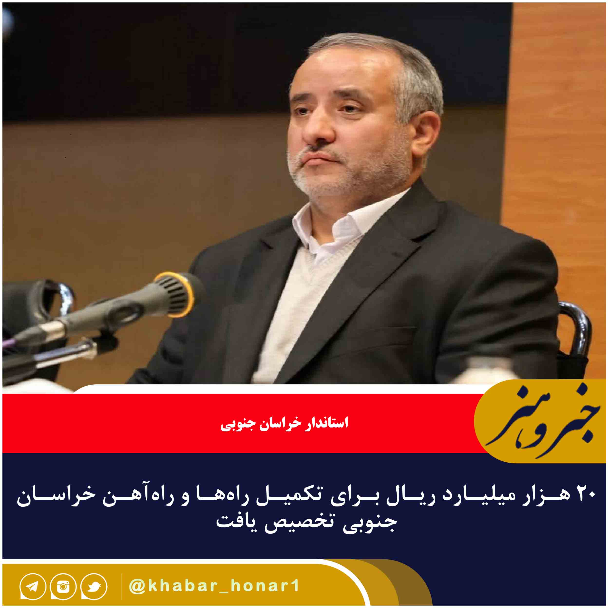 استاندار خراسان جنوبی گفت: در سه ماه گذشته با پیگیریهای انجام شده حدود ۲۰ هزار میلیارد ریال اعتبار برای تکمیل راهها و راه آهن استان تخصیص یافته است.
