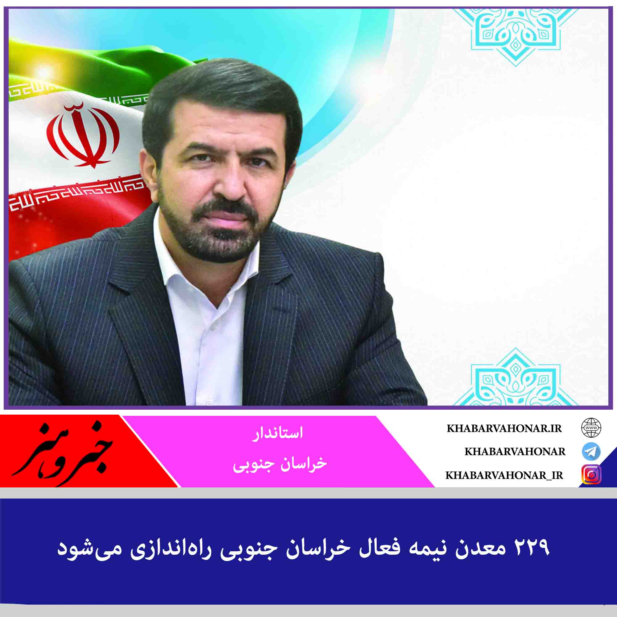 استاندار خراسان جنوبی گفت: با امضای تفاهمنامه سرمایهگذاری “هلدینگ معدنی خاوران” در ۲ دوره کوتاه مدت و بلندمدت، ۲۲۹ معدن نیمه فعال استان به چرخه فعالیت کامل بر میگردد.