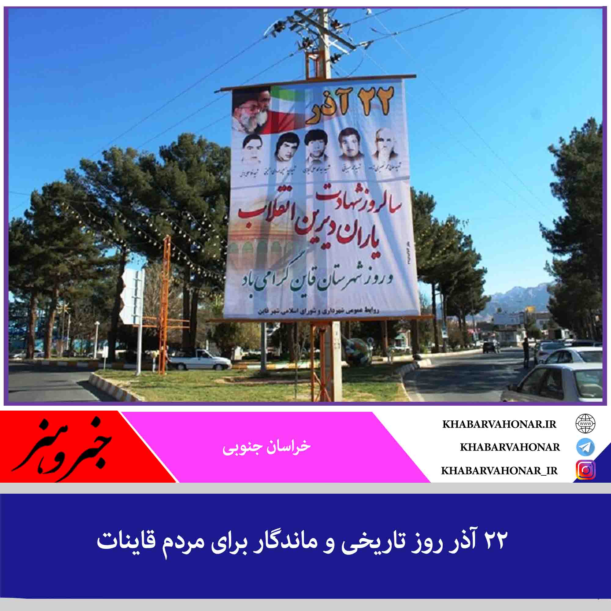 ۲۲ آذر که برای مردم قاینات یادآور تقدیم شهدایی به انقلاب اسلامی در سال ۱۳۵۷ است، به عنوان روز شهرستان قاینات تعیین و ماندگار شد.