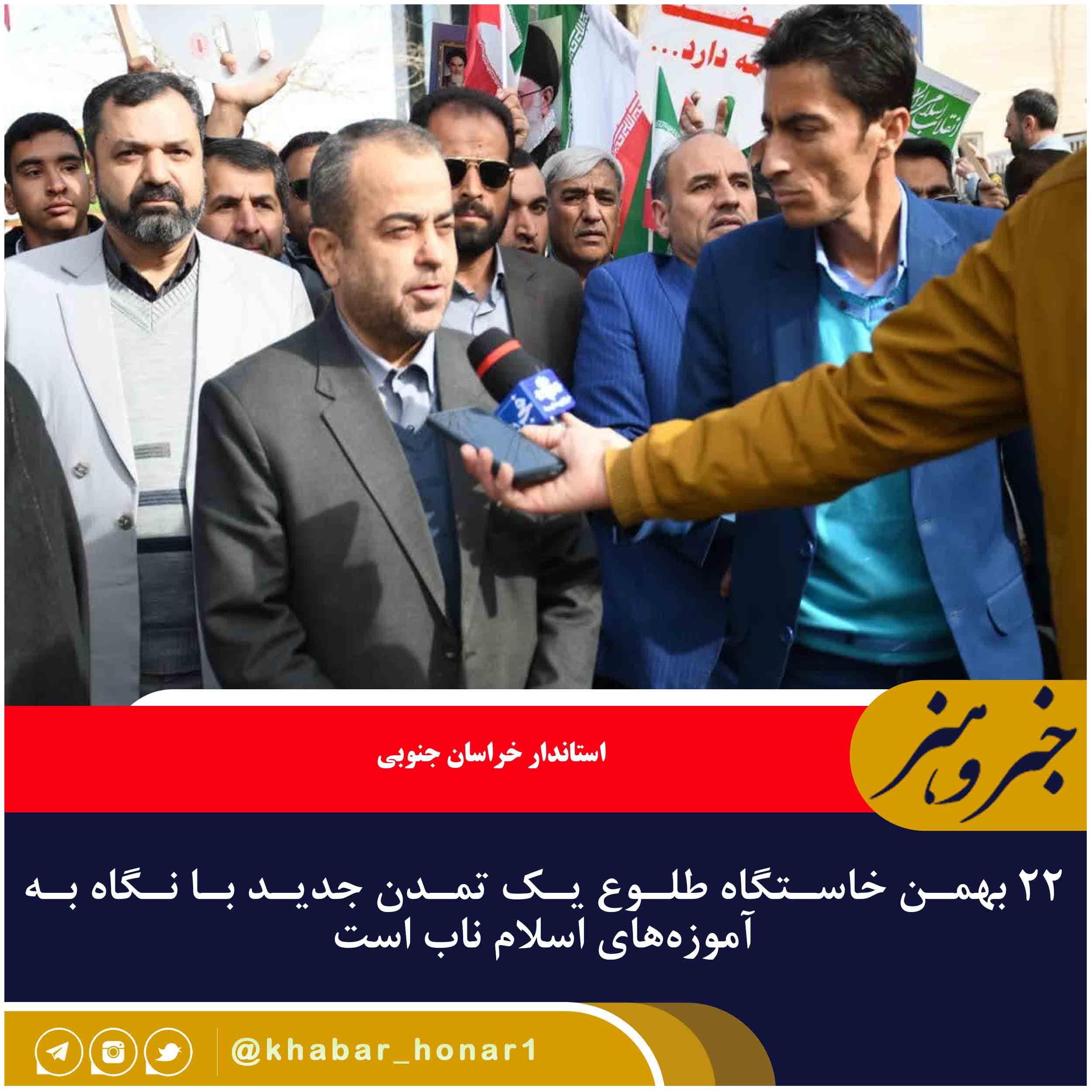 ?استاندار خراسان جنوبی گفت: ۲۲ بهمن خاستگاه طلوع یک تمدن جدید با نگاه به آموزههای اسلام ناب است.