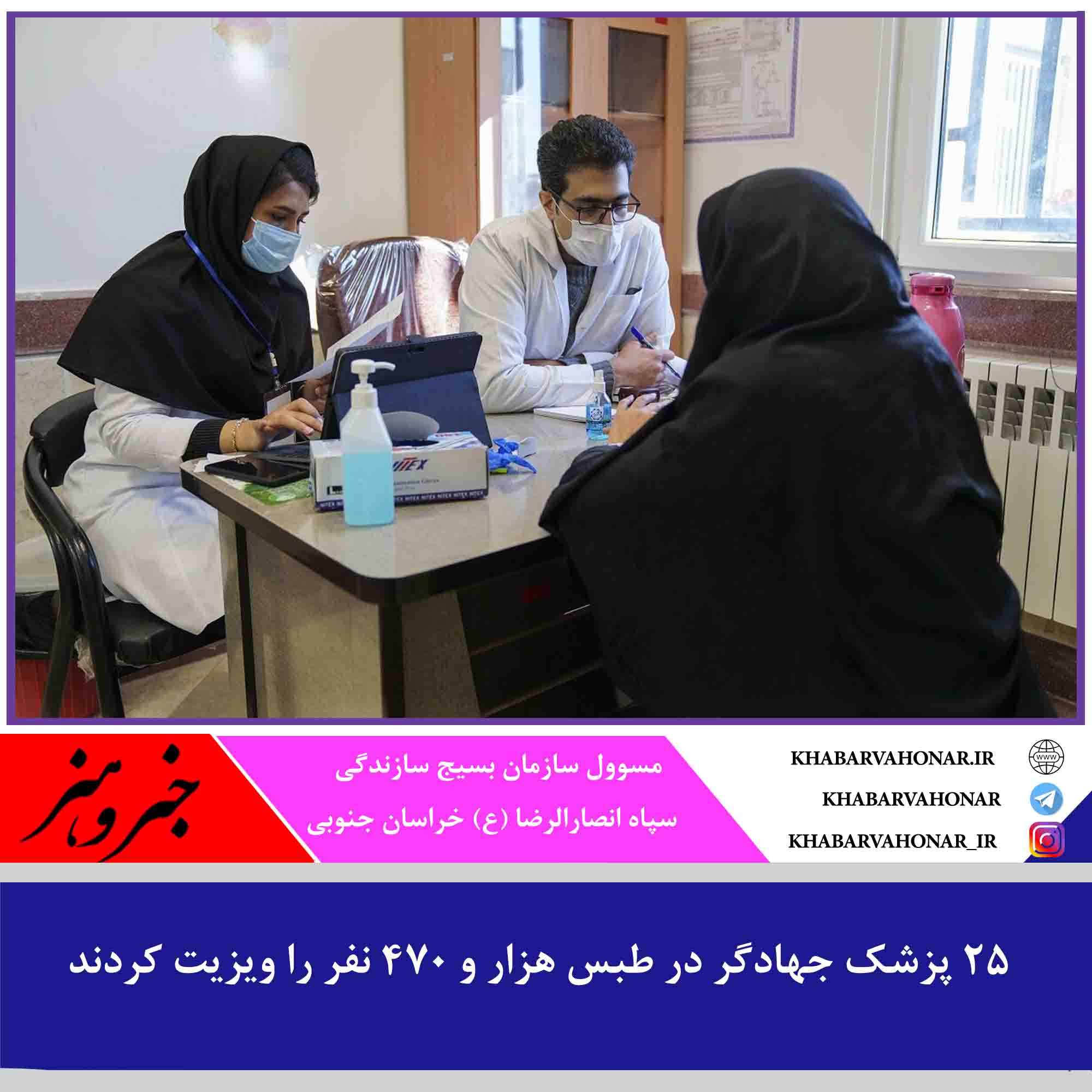 مسوول سازمان بسیج سازندگی سپاه انصارالرضا (ع) خراسان جنوبی گفت: ۱۰۰ جهادگر شامل ۲۵ پزشک فوق تخصص و متخصص و ۷۵ نفر عوامل اجرایی از جمله پرستار، رزیدنت و دستیار به هزار و ۴۷۰ نفر در شهرستان طبس خدمات پزشکی، فرهنگی و عمرانی را ارائه کردند.