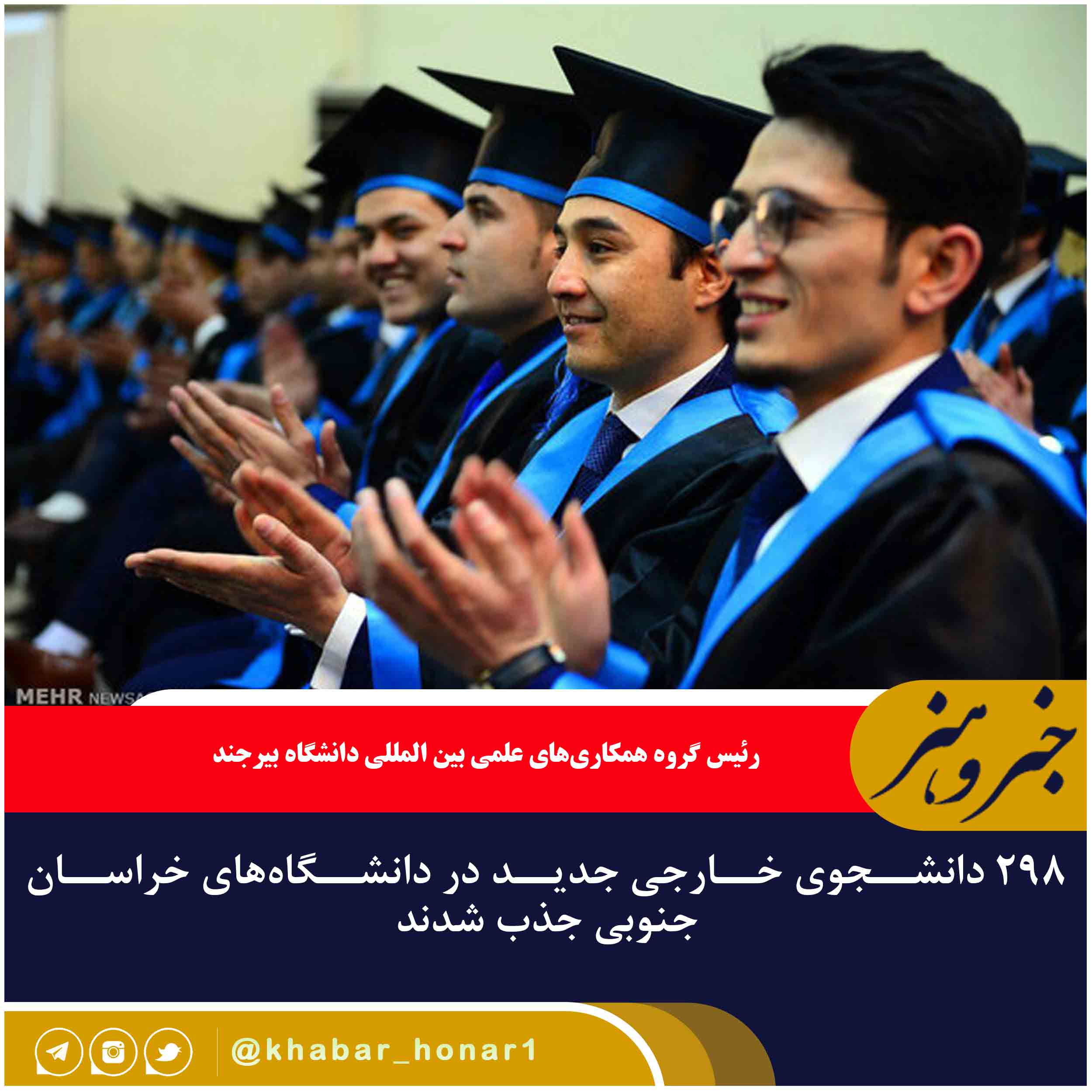 رئیس گروه همکاریهای علمی بین المللی دانشگاه بیرجند گفت: ۲۹۸ دانشجوی جدید خارجی سال تحصیلی جاری در دانشگاههای خراسان جنوبی ثبت نام و پذیرش شدند.