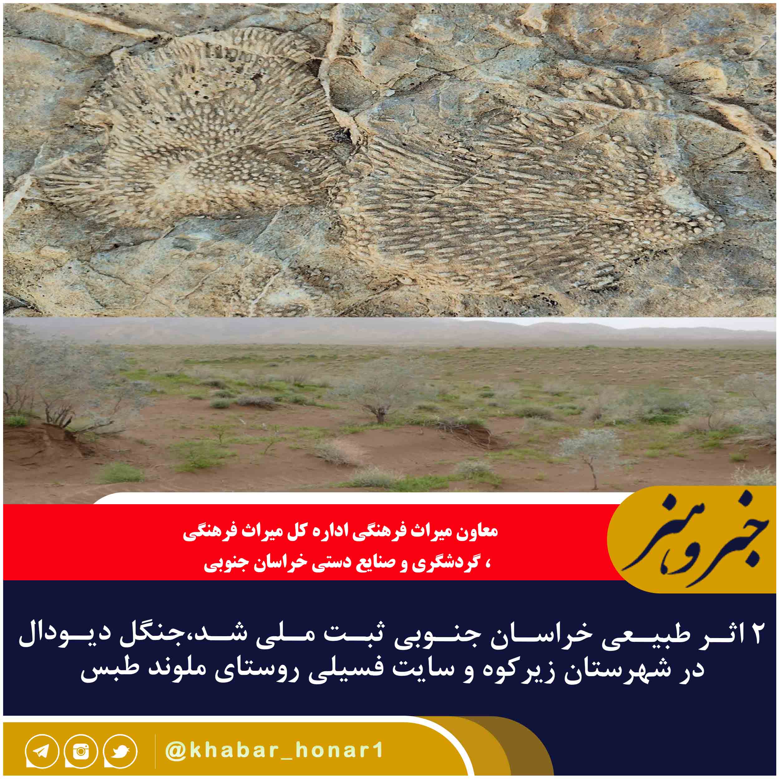 ، وحید بهفرنژاد بیان کرد: جنگل دیودال در شهرستان زیرکوه و سایت فسیلی روستای ملوند طبس پس از بررسی نهایی در دفتر ثبت وزارت متبوع در تاریخ ۲۸ خرداد ۱۴۰۲ در فهرست میراث طبیعی کشور به ثبت رسید.