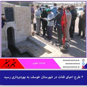 ۲ طرح احیا و مرمت قنوات روستاهای نوغاب خور و دستگرد شهرستان خوسف با اعتبار ۷۰۰ میلیون تومان به بهرهبرداری رسید.
