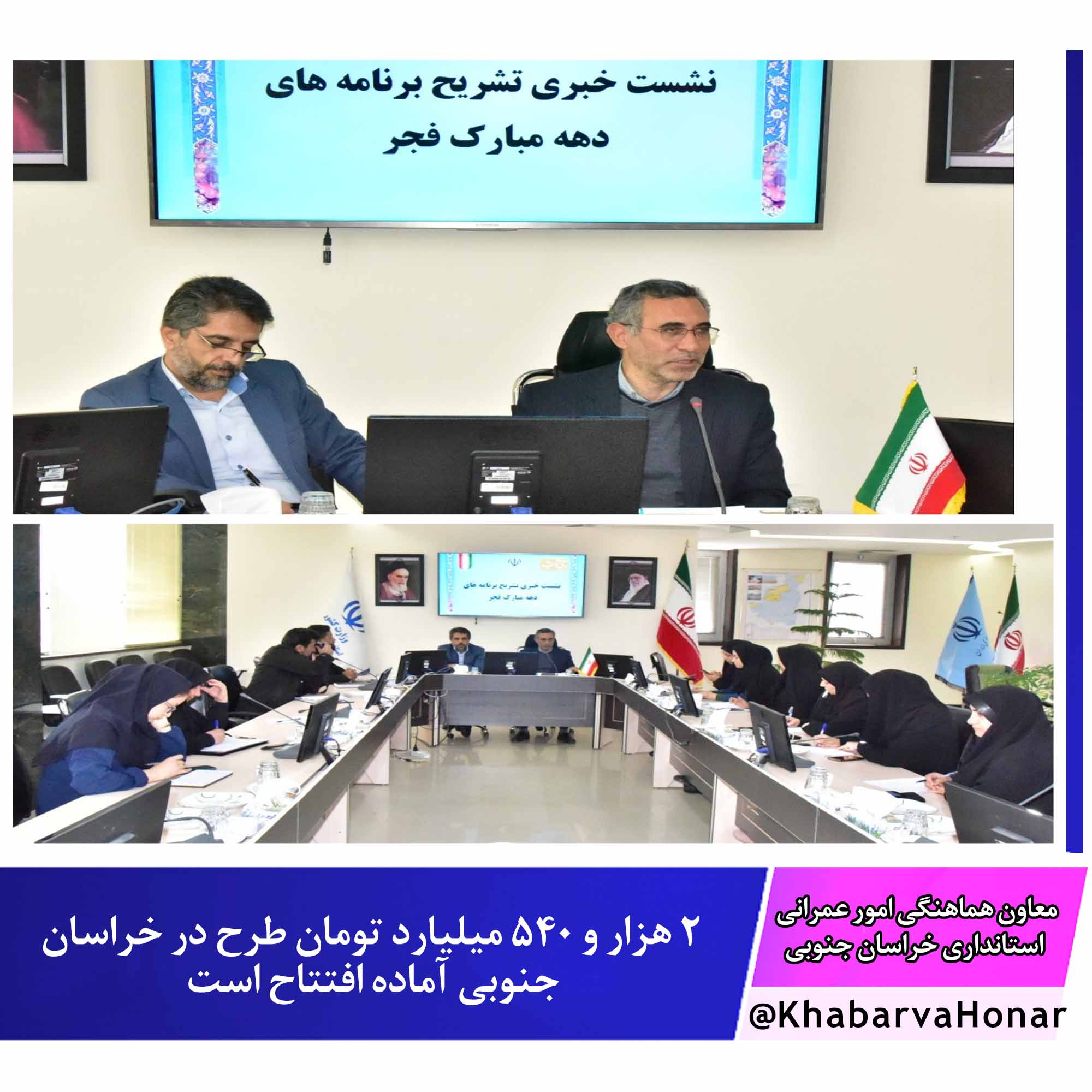 معاون هماهنگی امور عمرانی استاندار خراسان جنوبی گفت: یک هزار و ۴۵۹ طرح و پروژه با اعتبار ۲ هزار و ۵۴۰ میلیارد تومان همزمان با دهه فجر امسال در این استان افتتاح میشود.