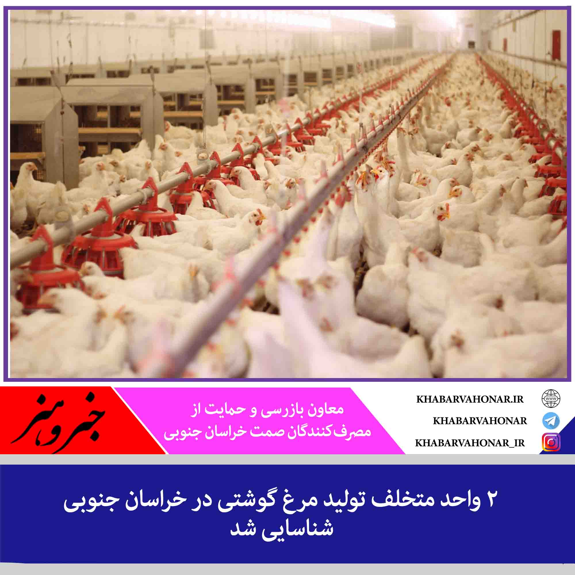 معاون بازرسی و حمایت از مصرفکنندگان سازمان صنعت، معدن و تجارت خراسان جنوبی گفت: با توجه به رصد و پیگیریهای صورت گرفته توسط بازرسان این سازمان ۲ واحد متخلف در حوزه تولید و عرضه مرغ گوشتی در استان شناسایی شد.