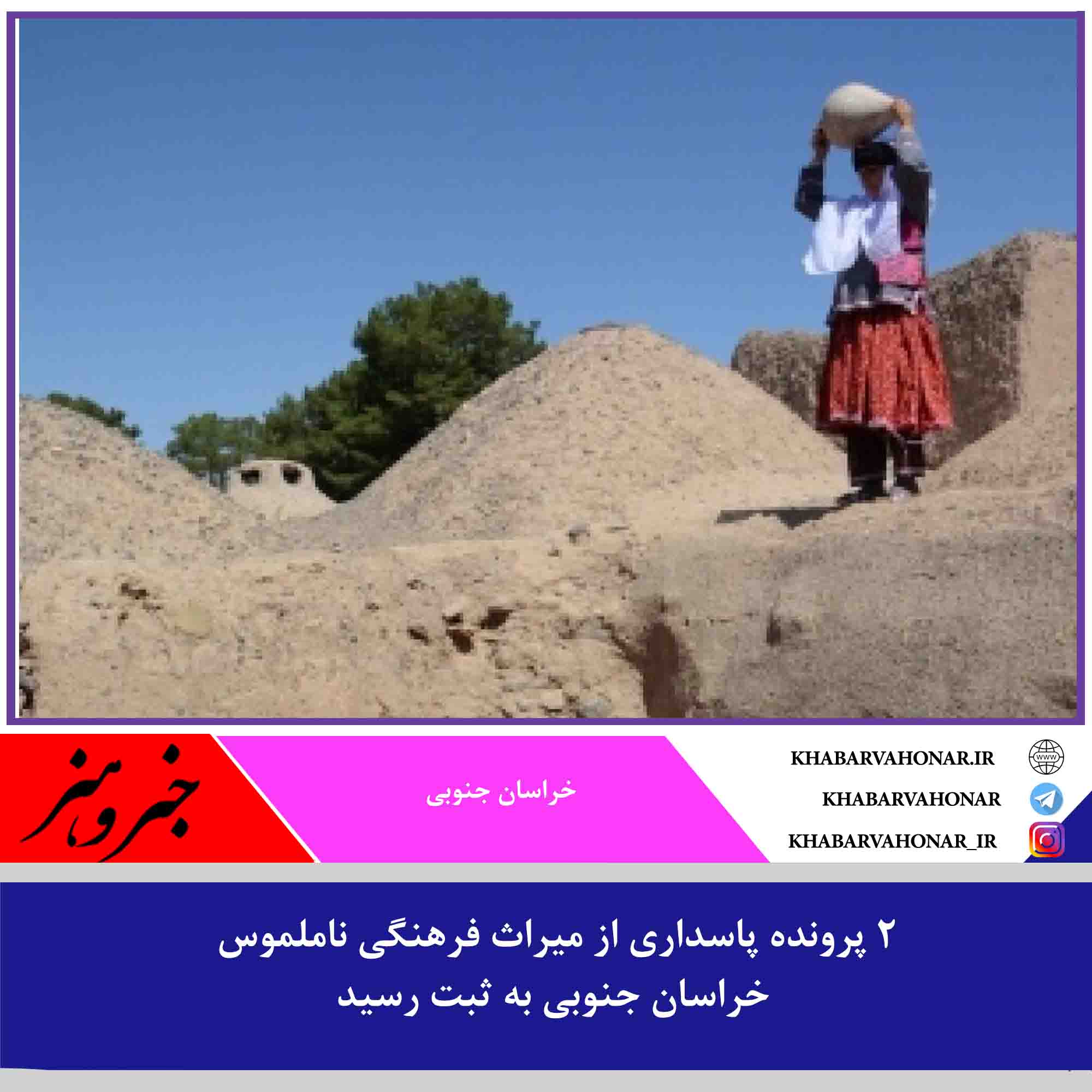 مسوول حوزه پژوهش اداره کل میراث فرهنگی، گردشگری و صنایع دستی خراسان جنوبی گفت: ۲ پرونده پاسداری از میراث فرهنگی ناملموس این استان در اولین همایش پاسداری از میراث فرهنگی ناملموس کشور مطرح شد و به ثبت رسید.