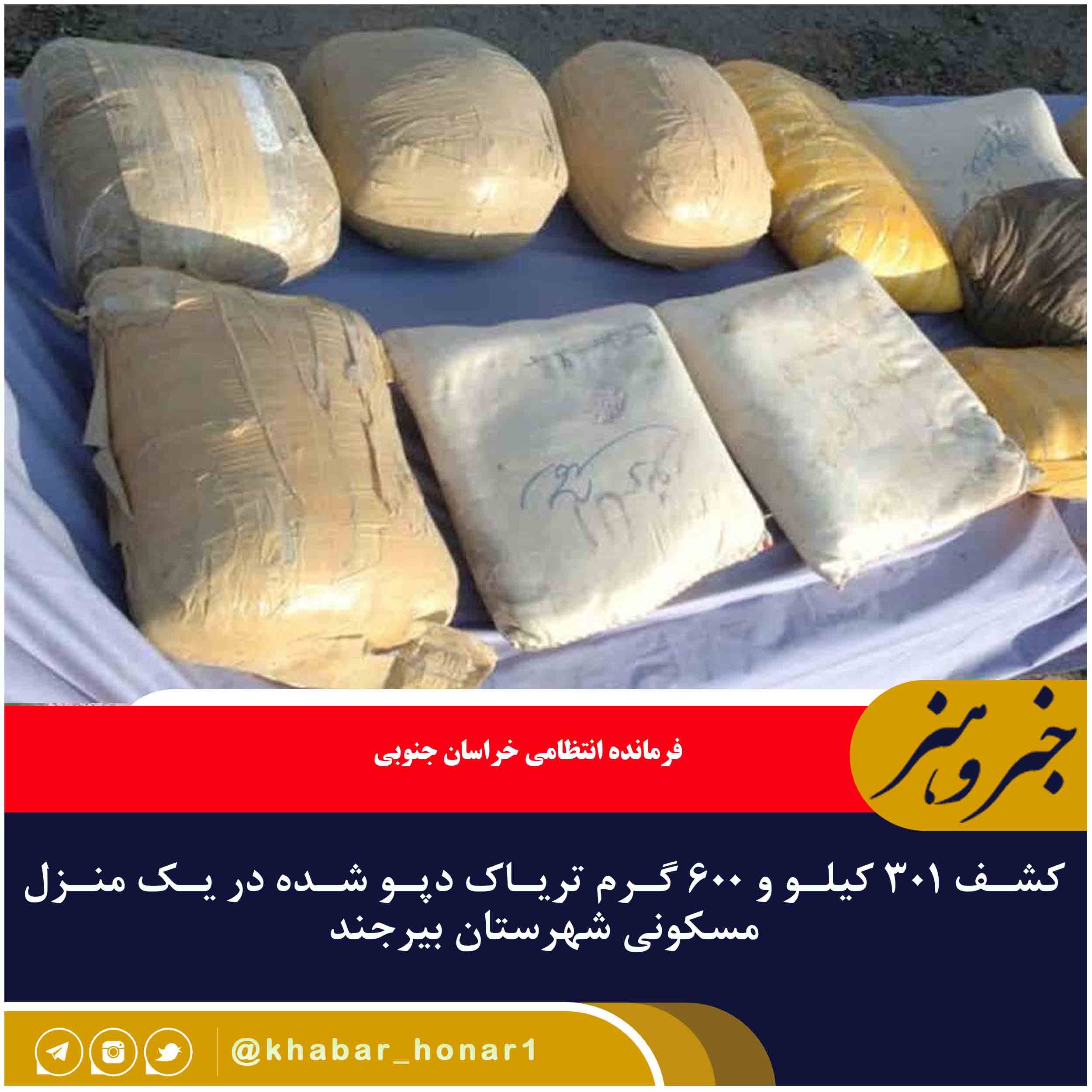 – فرمانده انتظامی خراسان جنوبی از کشف ۳۰۱ کیلو و ۶۰۰ گرم تریاک دپو شده در یک منزل مسکونی شهرستان بیرجند خبر داد.