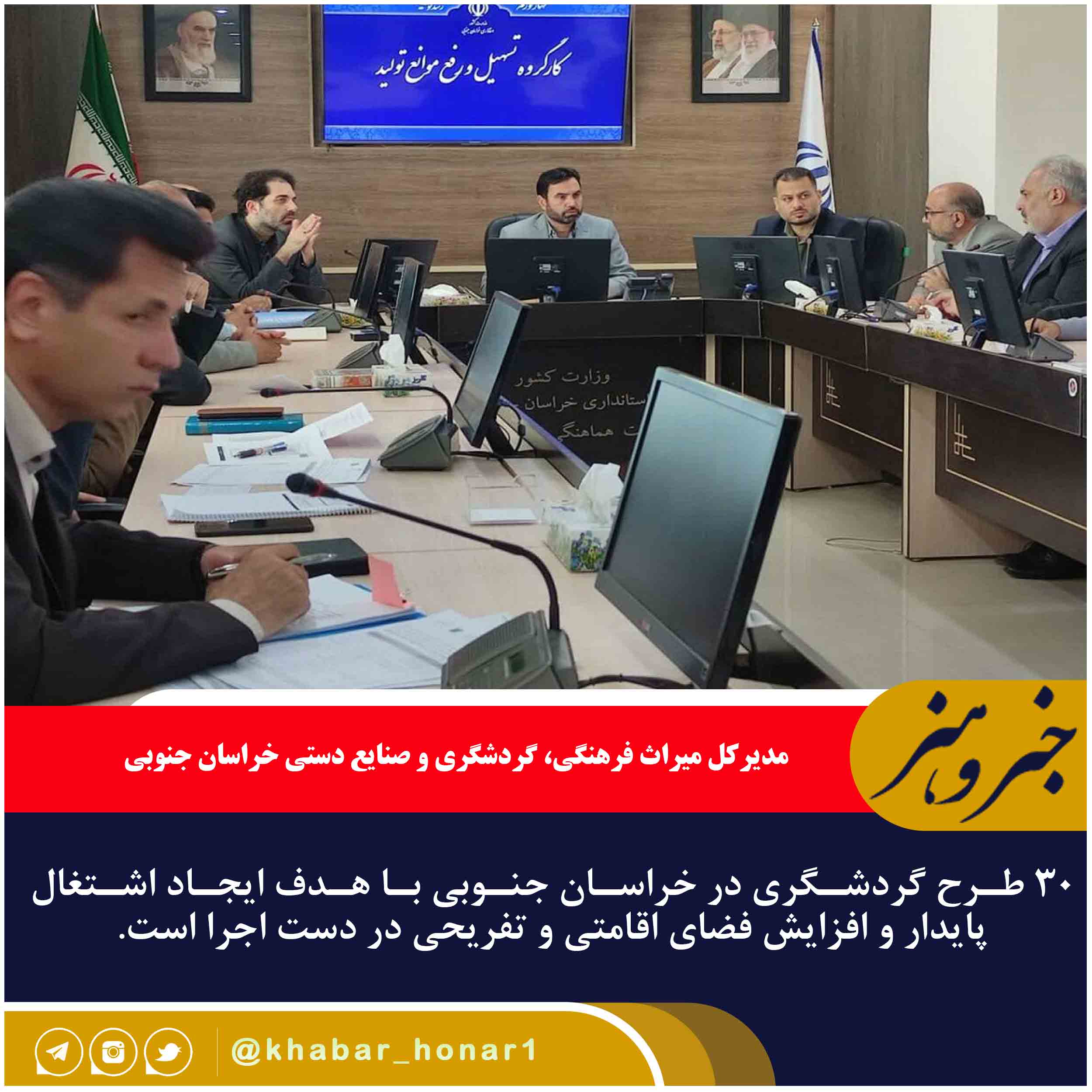 مدیرکل میراث فرهنگی، گردشگری و صنایع دستی خراسان جنوبی گفت: ۳۰ طرح گردشگری در خراسان جنوبی با هدف ایجاد اشتغال پایدار و افزایش فضای اقامتی و تفریحی در دست اجرا است.