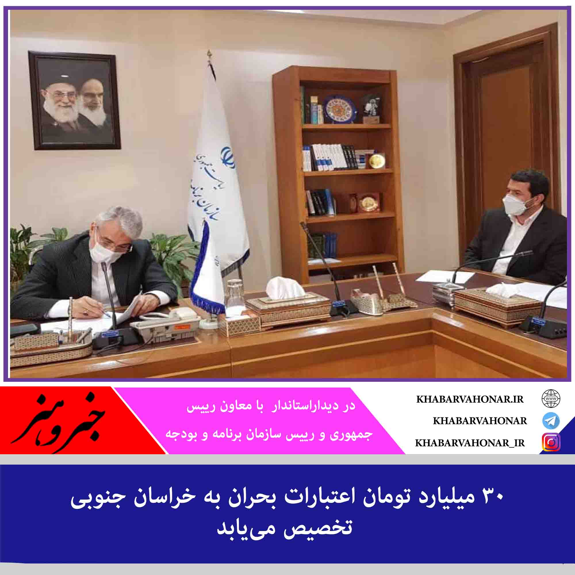 درخواست تخصیص ۳۰ میلیارد تومان اعتبارات بحران به خراسان جنوبی، در دیدار استاندار خراسان جنوبی با رییس سازمان برنامه و بودجه مورد موافقت قرار گرفت.