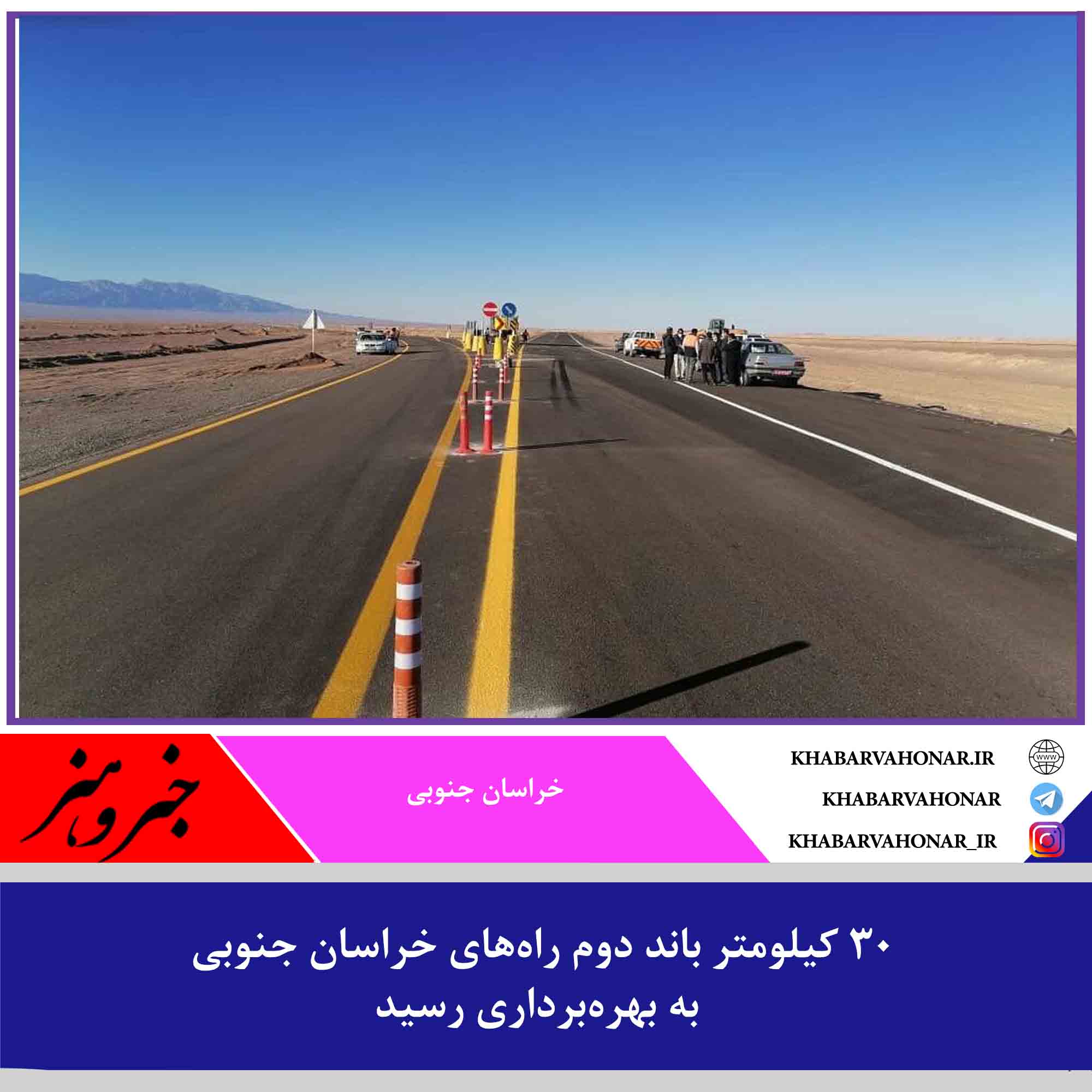 ۳۰ کیلومتر باند دوم راههای خراسان جنوبی به مناسبت دهه فجر با حضور ویدئوکنفرانسی وزیر راه و شهرسازی و جمعی از مسوولان استان در شهرستان سربیشه به بهرهبرداری رسید.